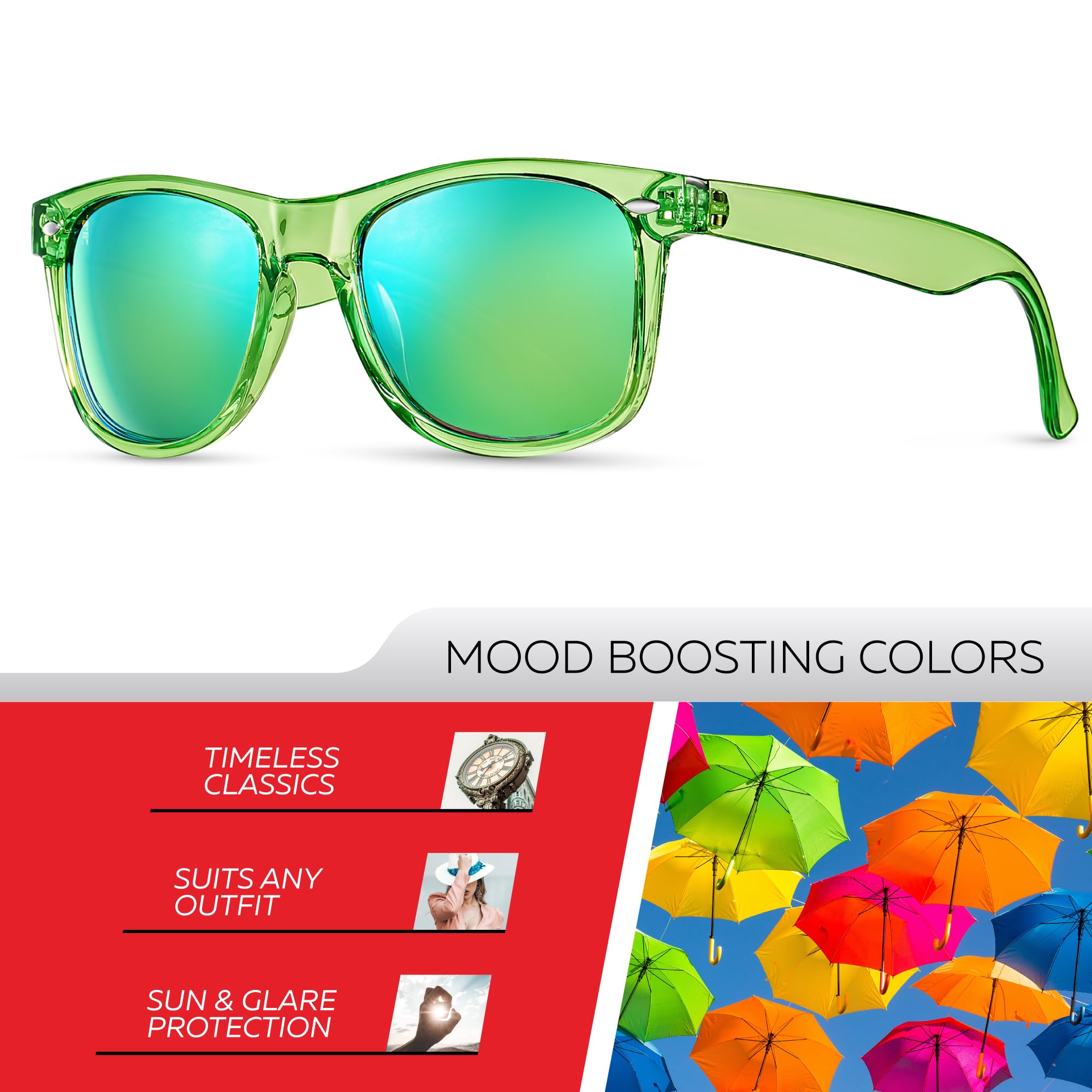🕶️ DESIGNED TO PLEASE ANY TASTE, ANY SHAPE AND MATCH ANY OUTFIT: The Retro Rewind Sunglasses are a mixture of vintage style, contemporary fashion, and modern technology. The sunglasses will put an exclamation point on your casual, business casual or athletic outfit and help you look sharp, crisp, and sophisticated! Available in 50+ color combinations.