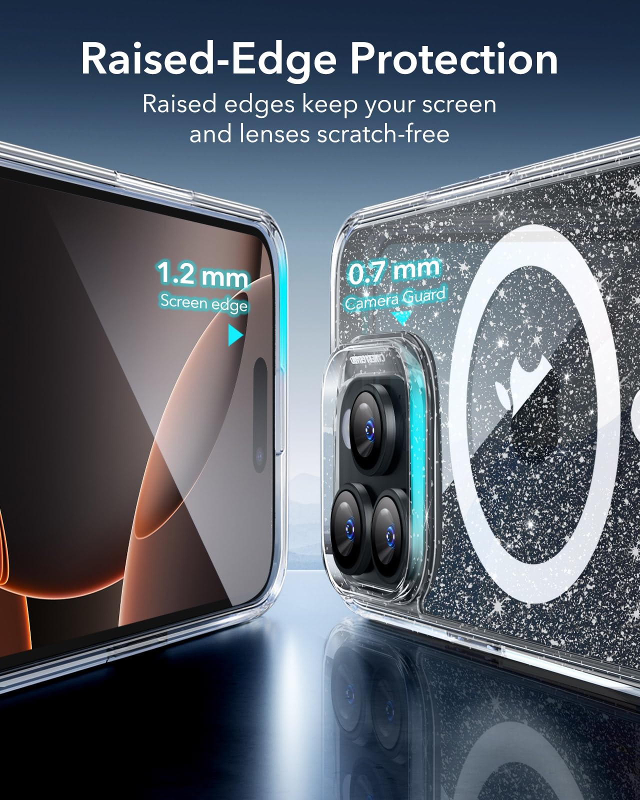 Raised-Edge Protection: raised screen edges and Camera Guard lens frame provide enhanced scratch protection