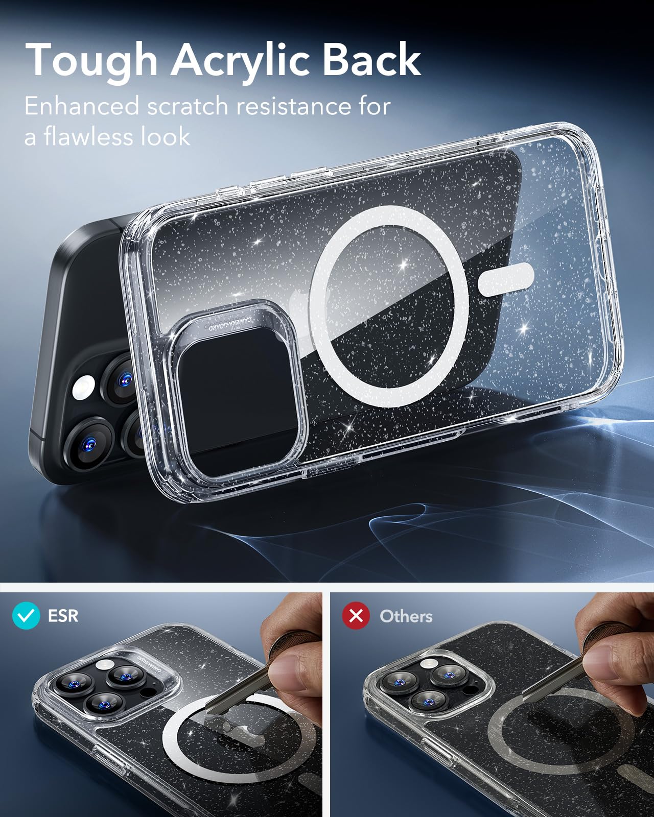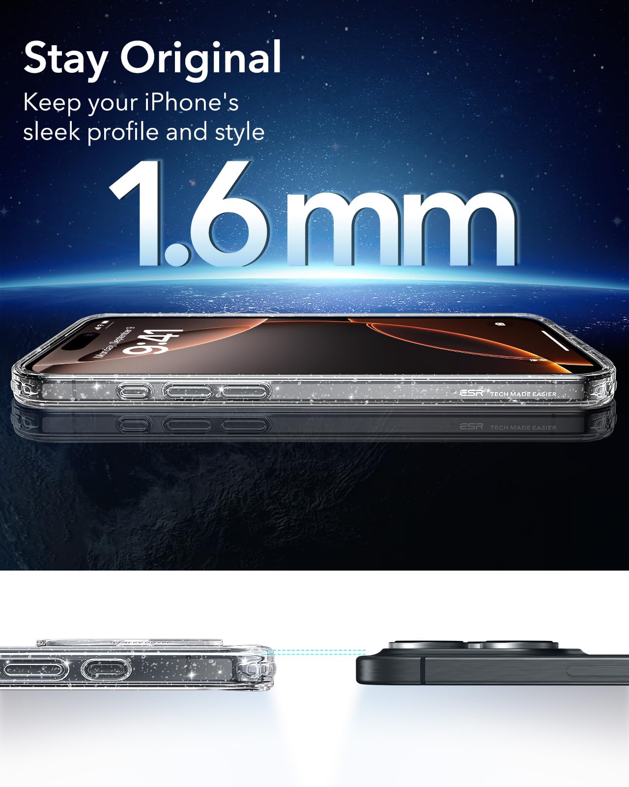 Stay Original: scratch-resistant, crystal-clear acrylic back lets you show off your iPhone 16 Pro Max’s original, sleek look