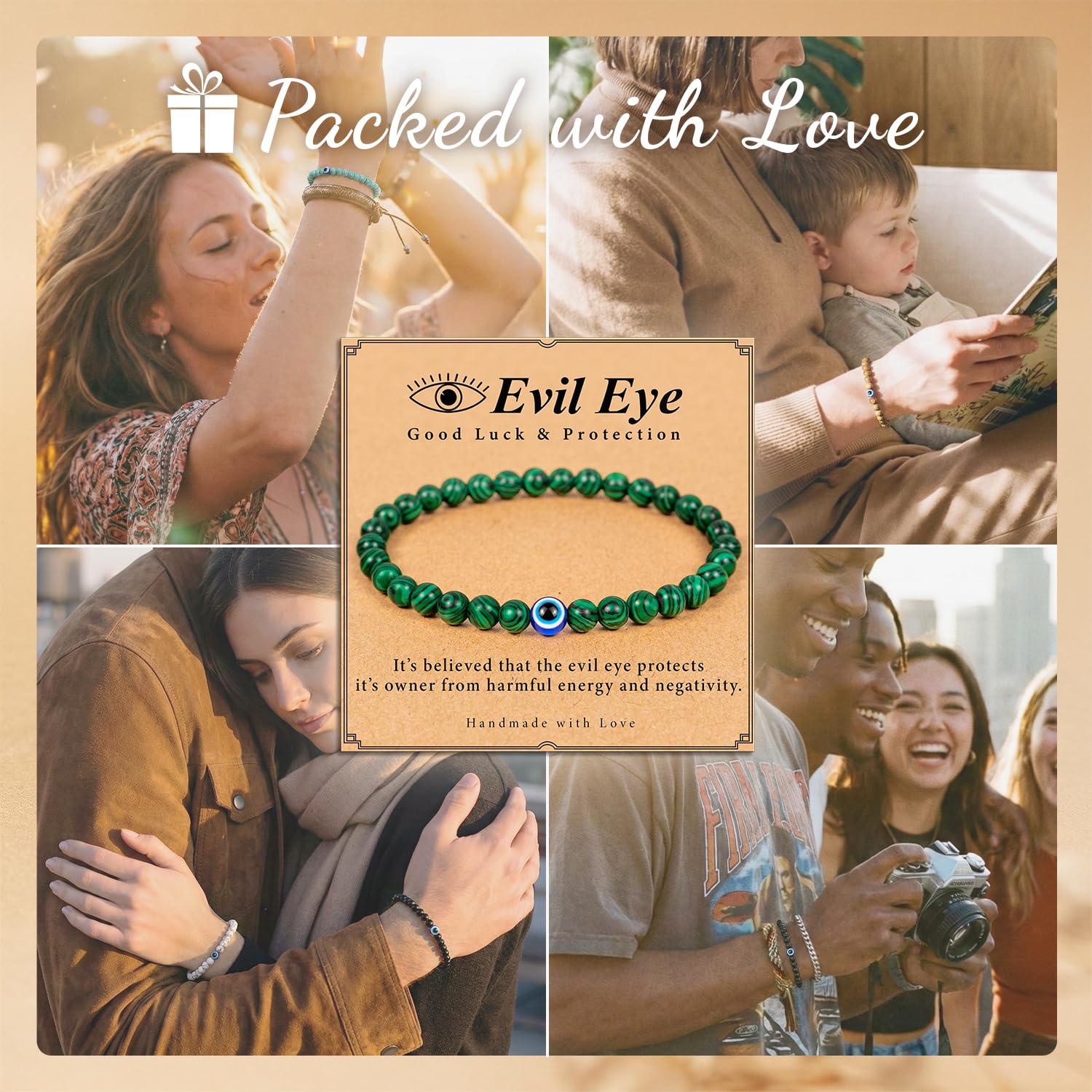 Eye-Catching Details: The intricate evil eye charm is the focal point, complemented by sleek beads or chains for a chic look.