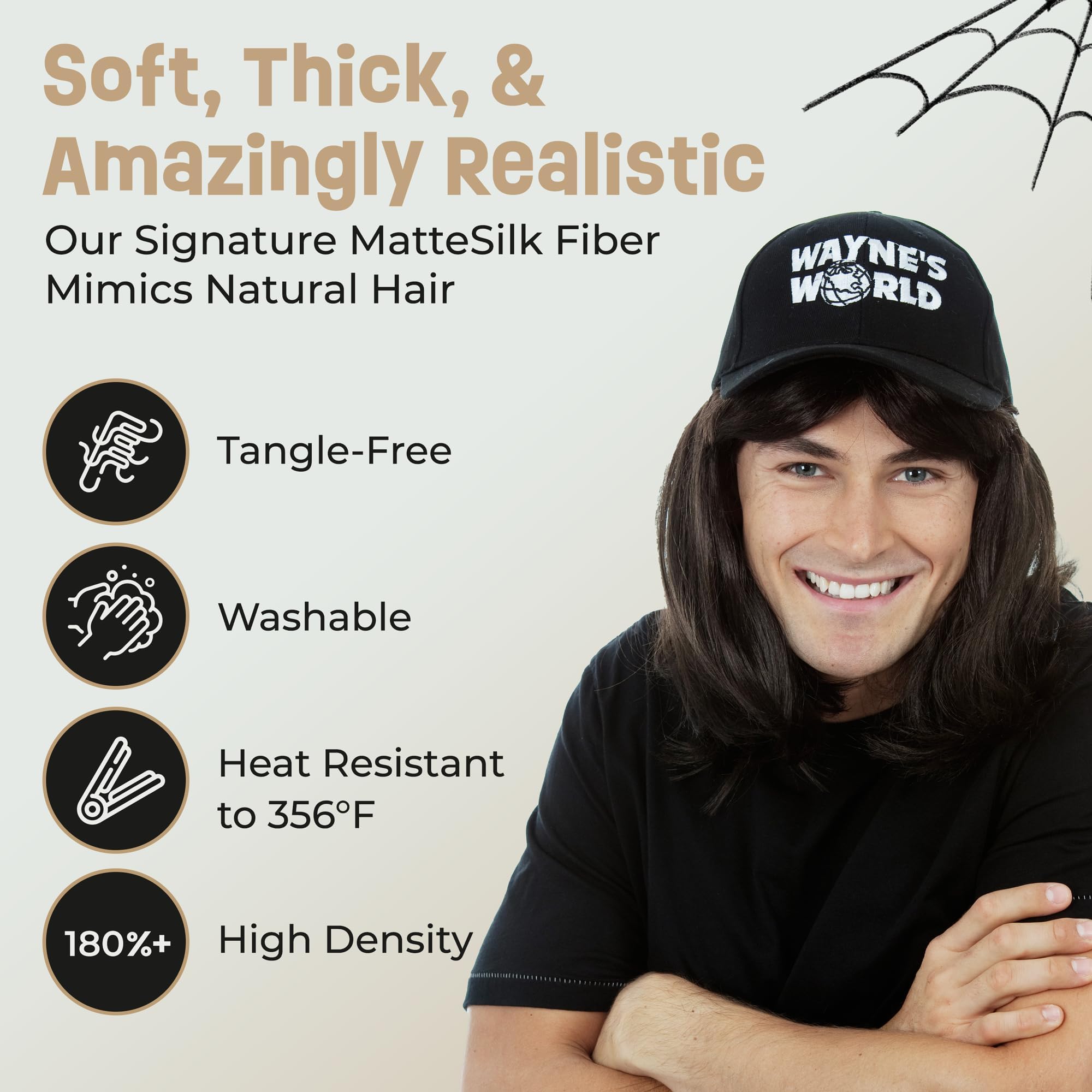 REALISTIC LOOK – MatteSilk Fiber Wig. We use our exclusive MatteSilk synthetic fiber for a softer, fuller, more realistic wig with great coverage—no shiny plastic look here. All photos are of our actual wig on real models, so what you see is what you get.