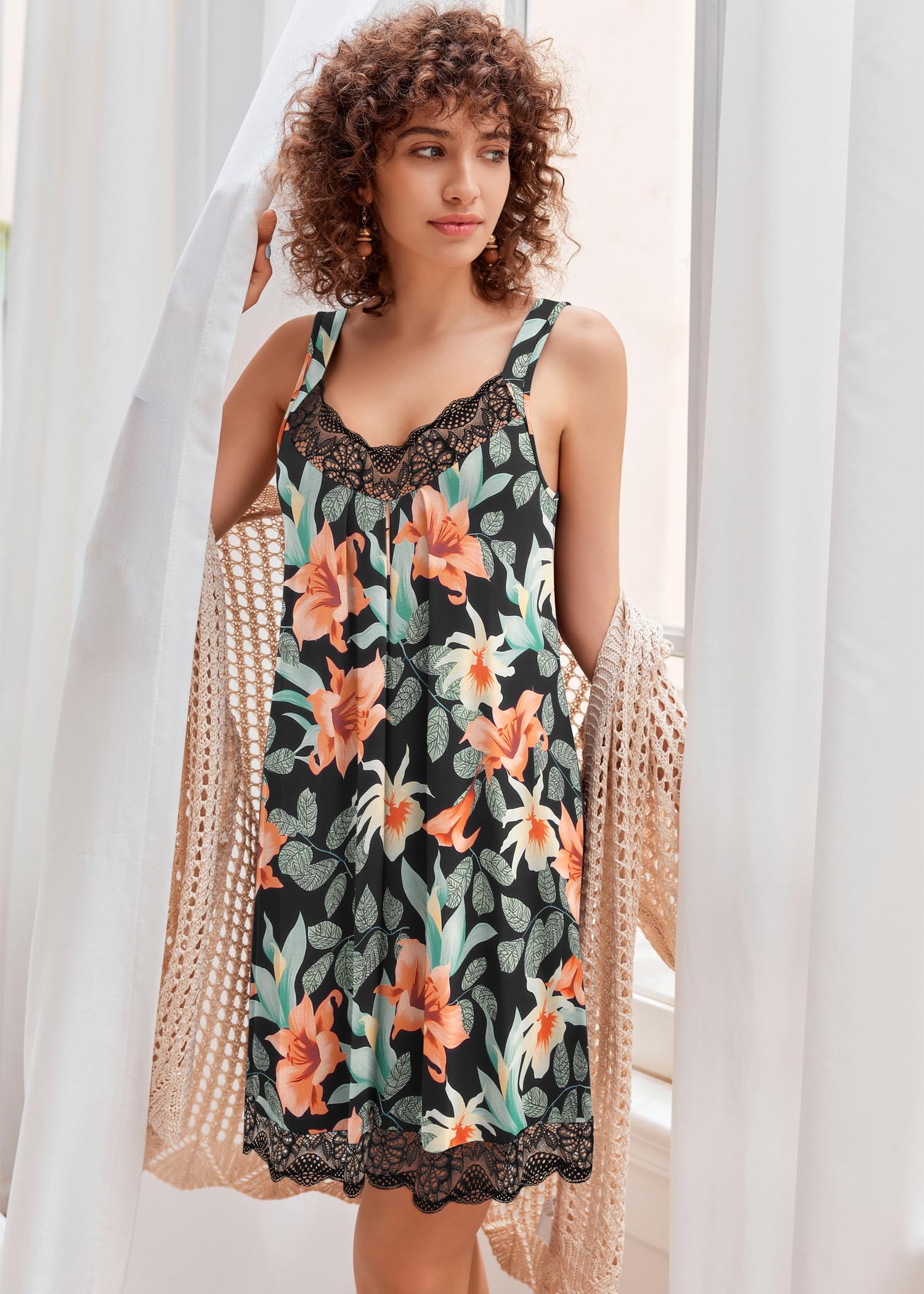Sleeveless nightgowns design of V-neck and floral lace help you to show your beautiful lines, makes you more cozy in the night