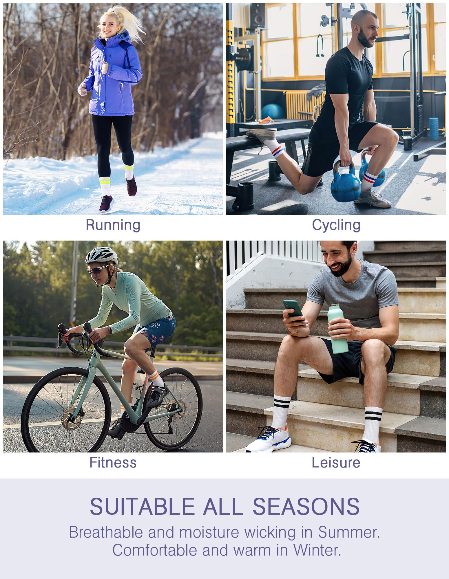[MATCH FOR ALL OCCASSION]: these calf socks will provide protection for your foot when you're wearing them at home or outdoors. Perfect high performance crew socks for athletic, running, biking, jogging, strength training, hiking, power walking, playing football, gym exercising and golfing. Simple style fits adults and teenagers' daily wear or workout.