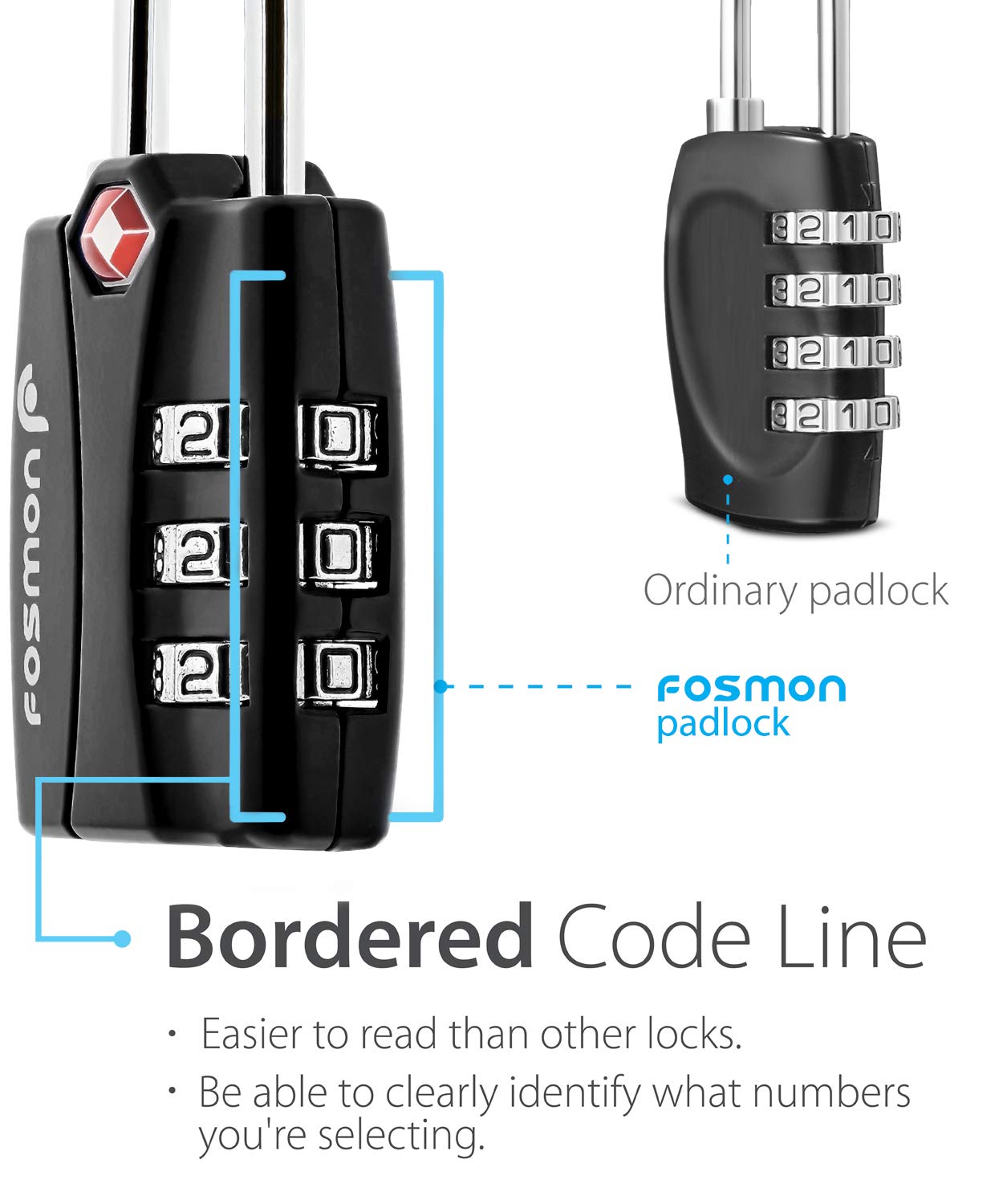 [TSA ACCEPTED LUGGAGE LOCKS] The Fosmon TSA lock allows your luggage to be checked without damage to the lock. The TSA agent will open and relock your luggage after inspection, giving you peace of mind.