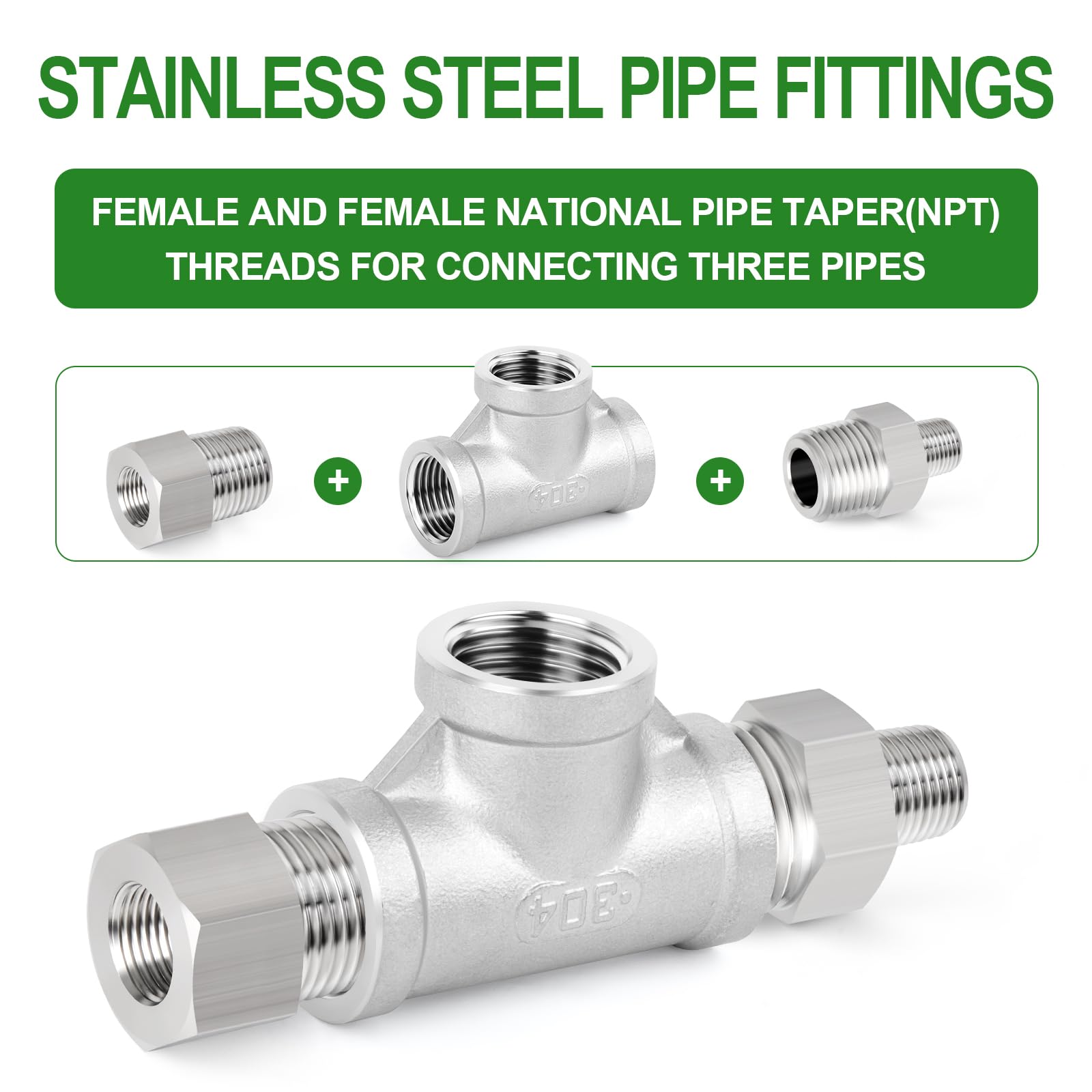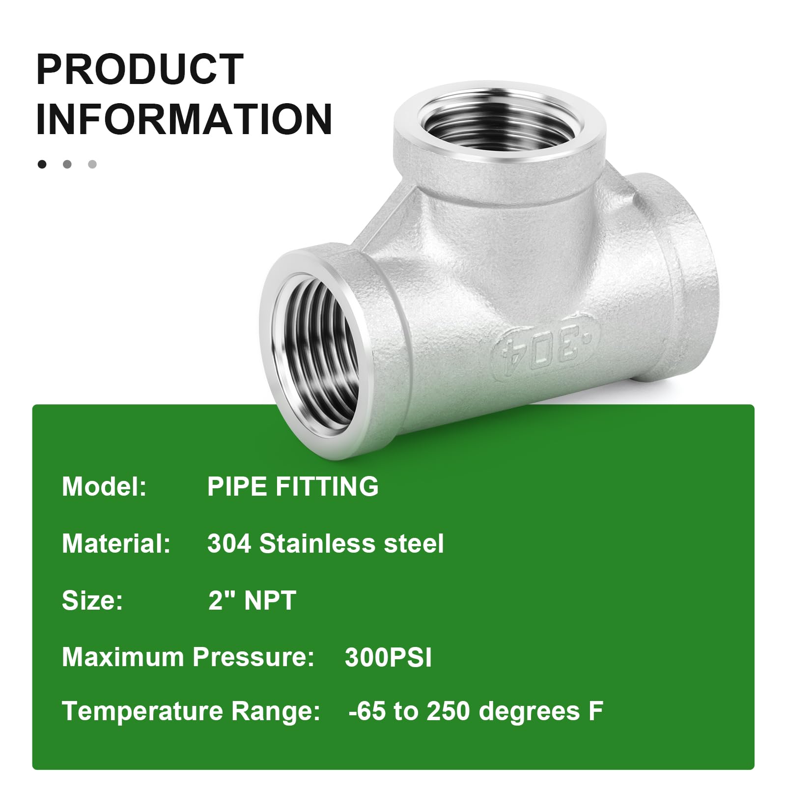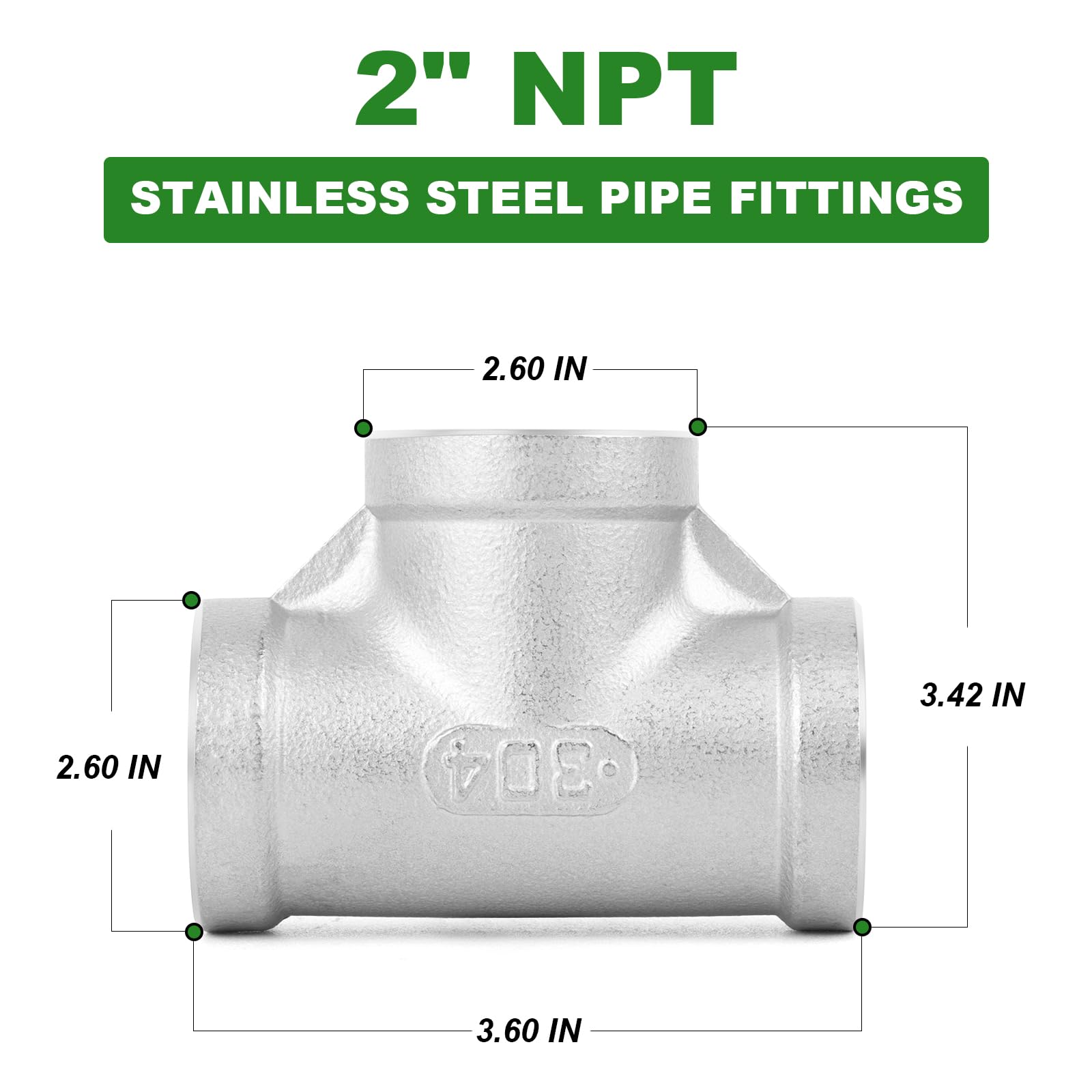 [ Product Type ] Tee (2" x 2" x 2" NPT Female), used for industrial connection of pipes or fittings with different end types, diameters or materials,NPT thread size does not actual diameter, it is only nominal pipe size,Tee with three openings for connecting and branching three pipes.