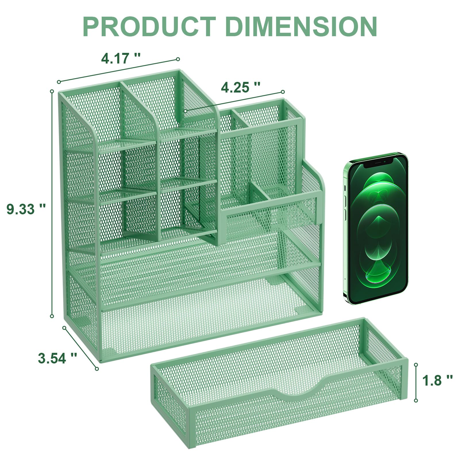 【UNIQUE DESIGN】: Exclusive structure design, this mesh desktop organizer is all-in-one construction giving it a more-functional storage performance which is convenient for storing and organizing small items on office desks, at home, on vanity, and so on, helping you to save space, and make your desk look more neat and clean