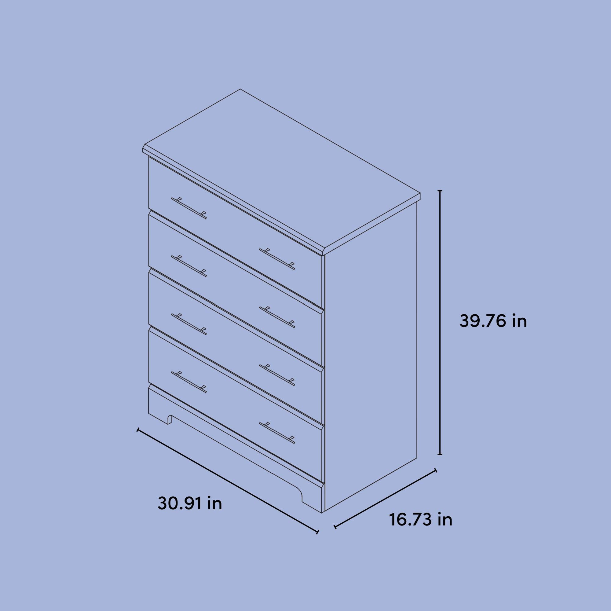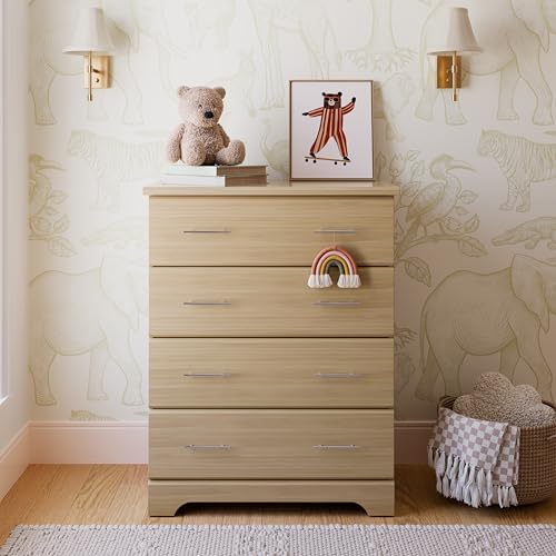 NURSERY AND KIDS BEDROOM DRESSER: Universal design to match any nursery or kids bedroom; 4 drawer bedroom dresser; Crafted of wood composites, laminated with a durable, easy-to-clean PU coated surface, and includes Euro drawer glides; Assembly required