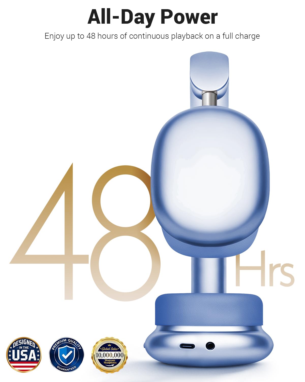 Up to 48 Hours Playtime & Dual Modes - Enjoy up to 48 hours of continuous playtime on a single charge. When the battery runs low, simply plug in the included 3.5mm audio cable to switch seamlessly from wireless to wired mode—ensuring your music never stops, even on long journeys.