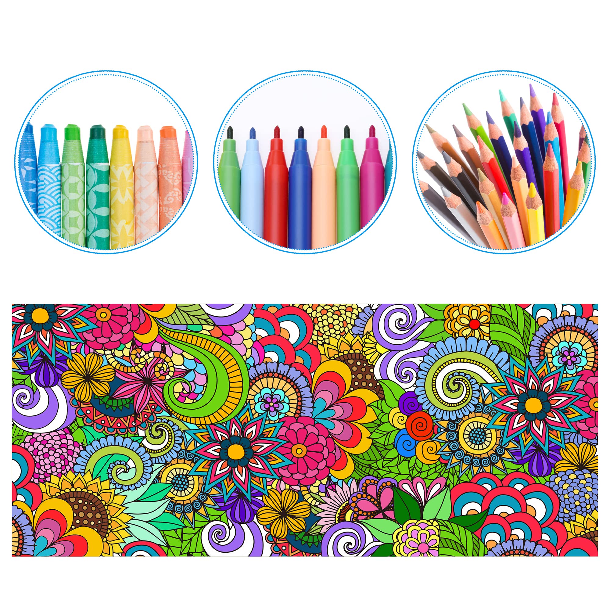 Jumbo Mandala Coloring Poster: Our giant 55.1" x 23.6" mandala coloring poster is filled with a variety of different mandala flowers. Suitable for all children and adults to create their own posters together using markers, crayons, neutrals, coloured pencils and more.