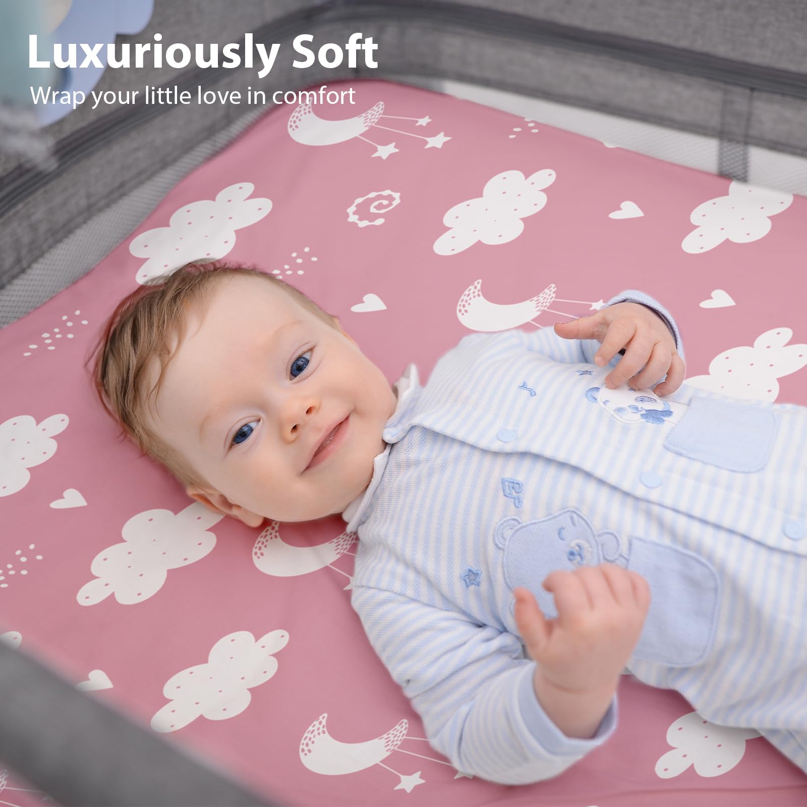 Soft & Skin-friendly Fabric: Crafted from premium microfiber with advanced knitting techniques, our baby bedside bassinet sheets are ultra-soft and gentle enough for delicate and sensitive skin. Designed to keep your baby comfortable and relaxed, they help maintain a restful sleep environment and daytime moments full of joy.