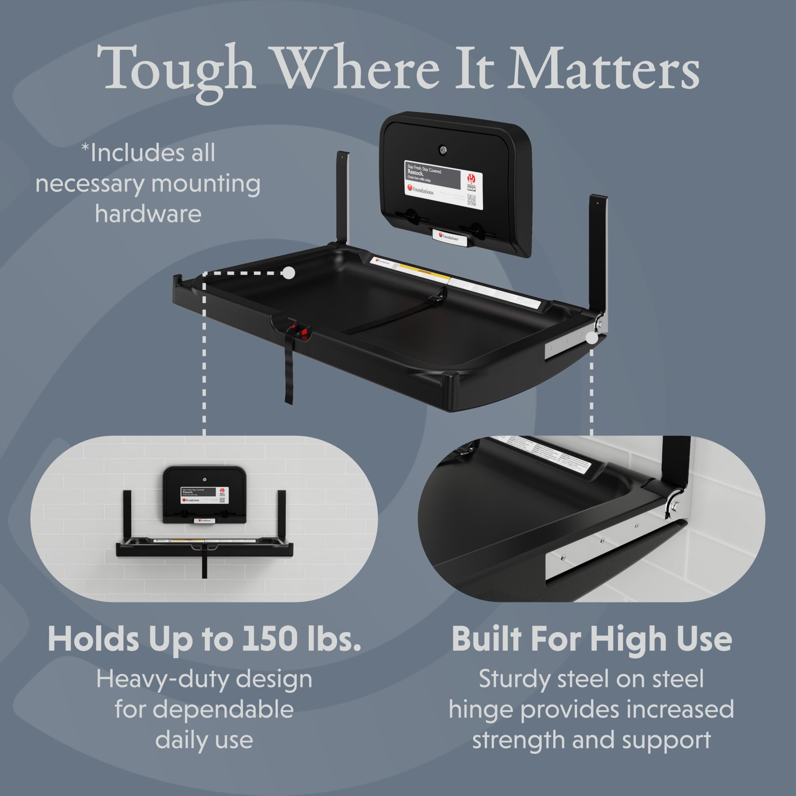 Built Stronger: Our baby changing stations are designed to exceed standards. They don’t just meet the required ASTM 50 lb. weight rating; they're durability tested to 150 lbs. for lasting confidence and peace of mind. Made in the USA
