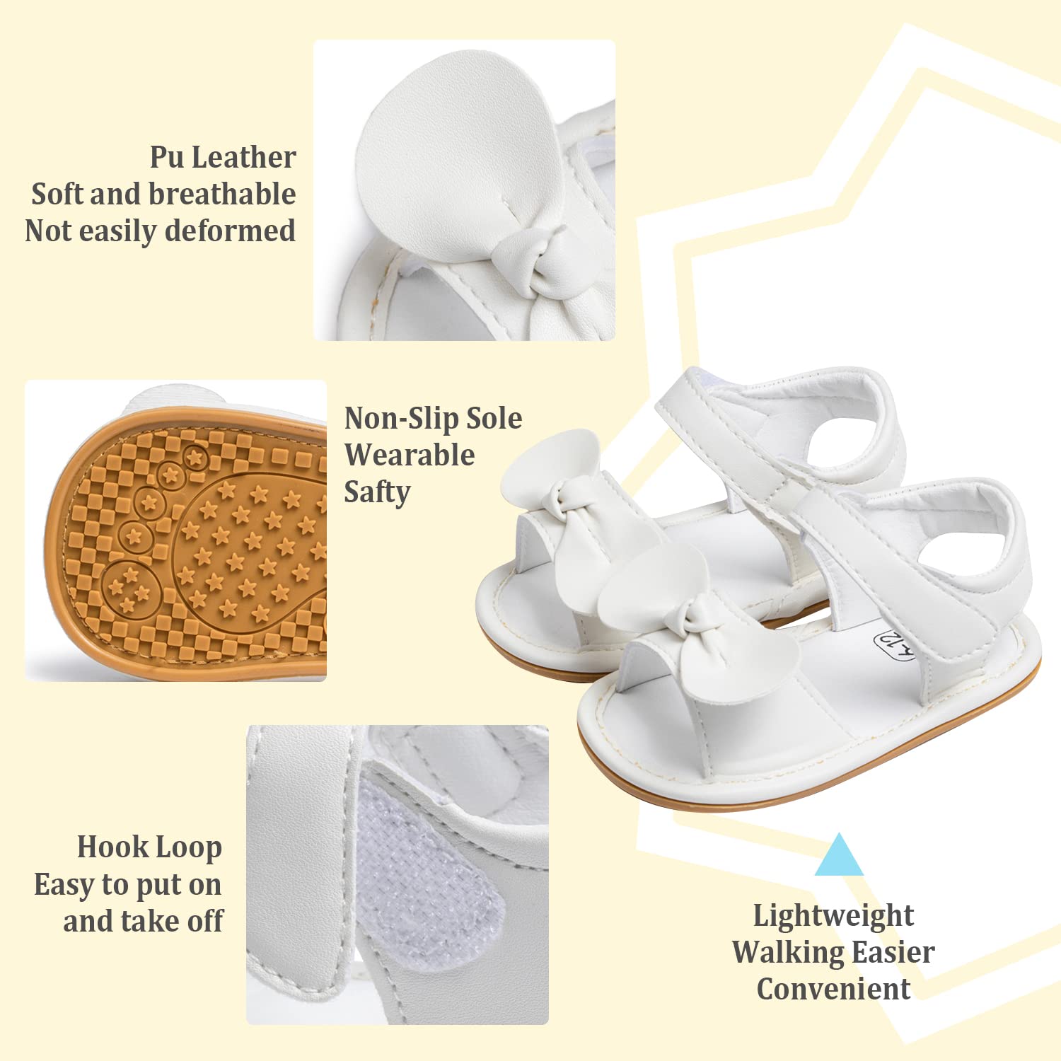 HOOK LOOP: Easy to put on, and easy off with hook loop closures on ankle strap, it can easily adjust the size and fit. Still stay on your baby’s feet