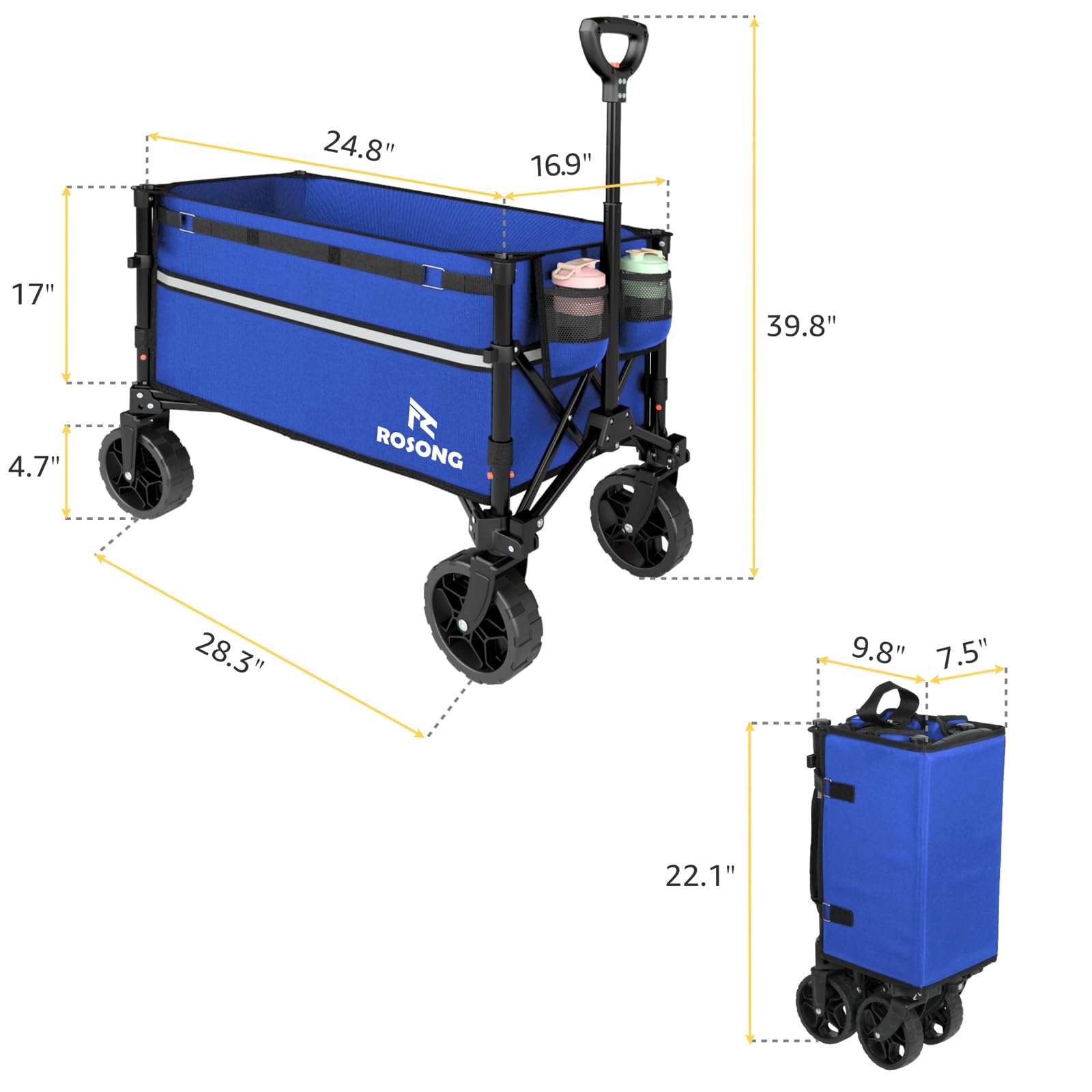 Space-Saving Design: Weighing only 12 lbs, this compact foldable wagon easily fits into any car when folded (22''*9.8''*7.5''), maximizing space for your journey