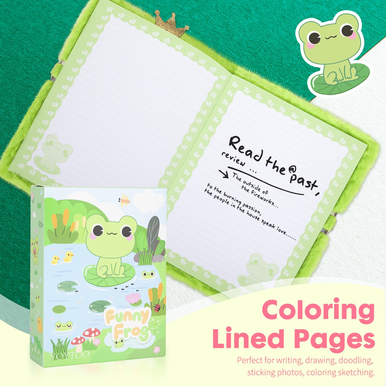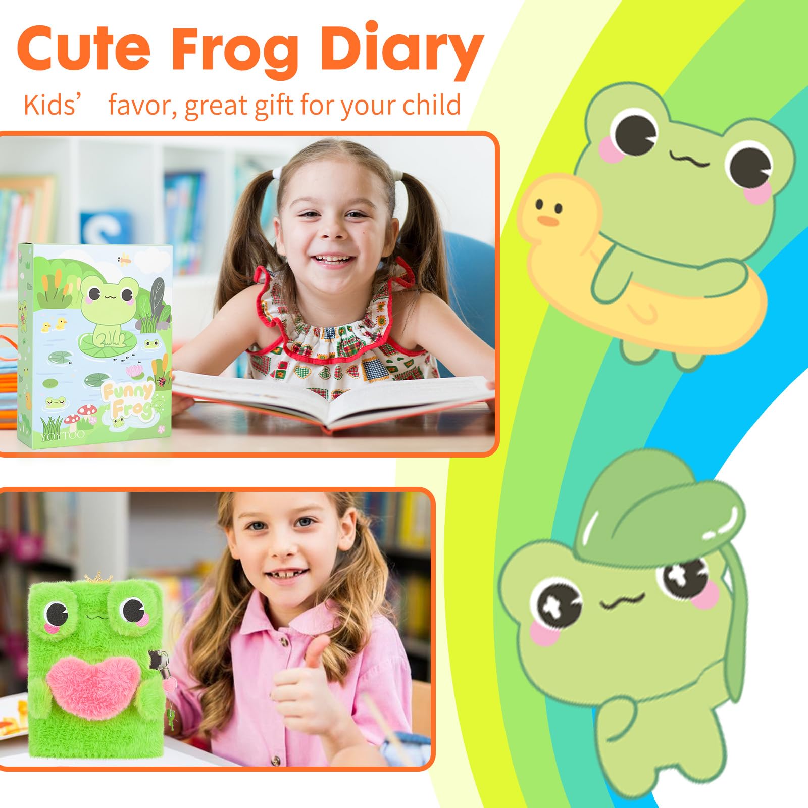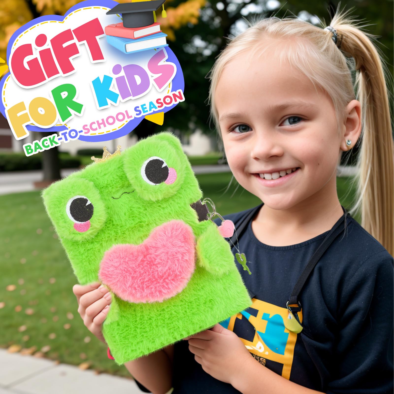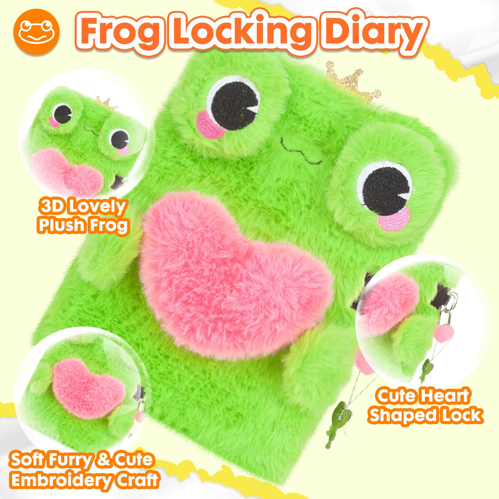 Plush Frog Journal: Dimensions: 6.65 x 8.43 x 1 inch; With 160 writing lined pages, 1 pink cute heart shaped lock, 2 silver keys; An amazing diary gift for little girls age 5-12 years old