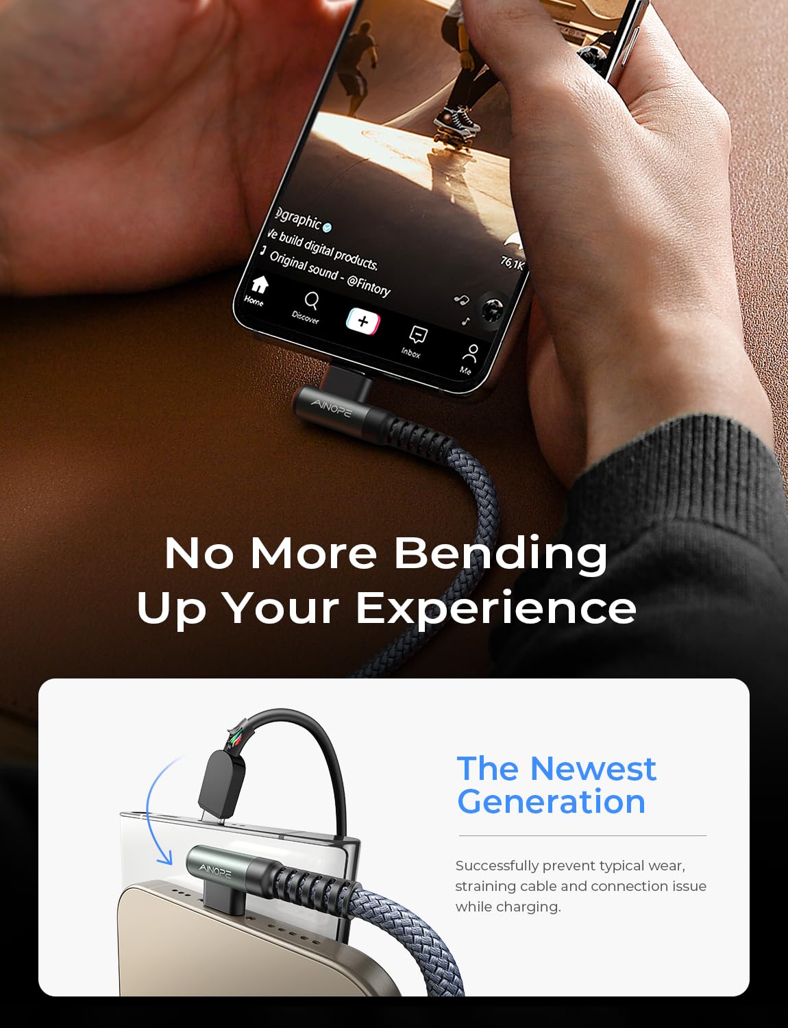 [AMAZING DURABILITY]: Reinforced 90 degree USB C cable with special SR joint, Lasts 30x longer than ordinary cables-proven in a laboratory environment to withstand 40000 bends. It built-in laser welding technology, which ensure the metal part won't break. One of the toughest cables ever created, with tensile strength capable of withstanding 175 lbs