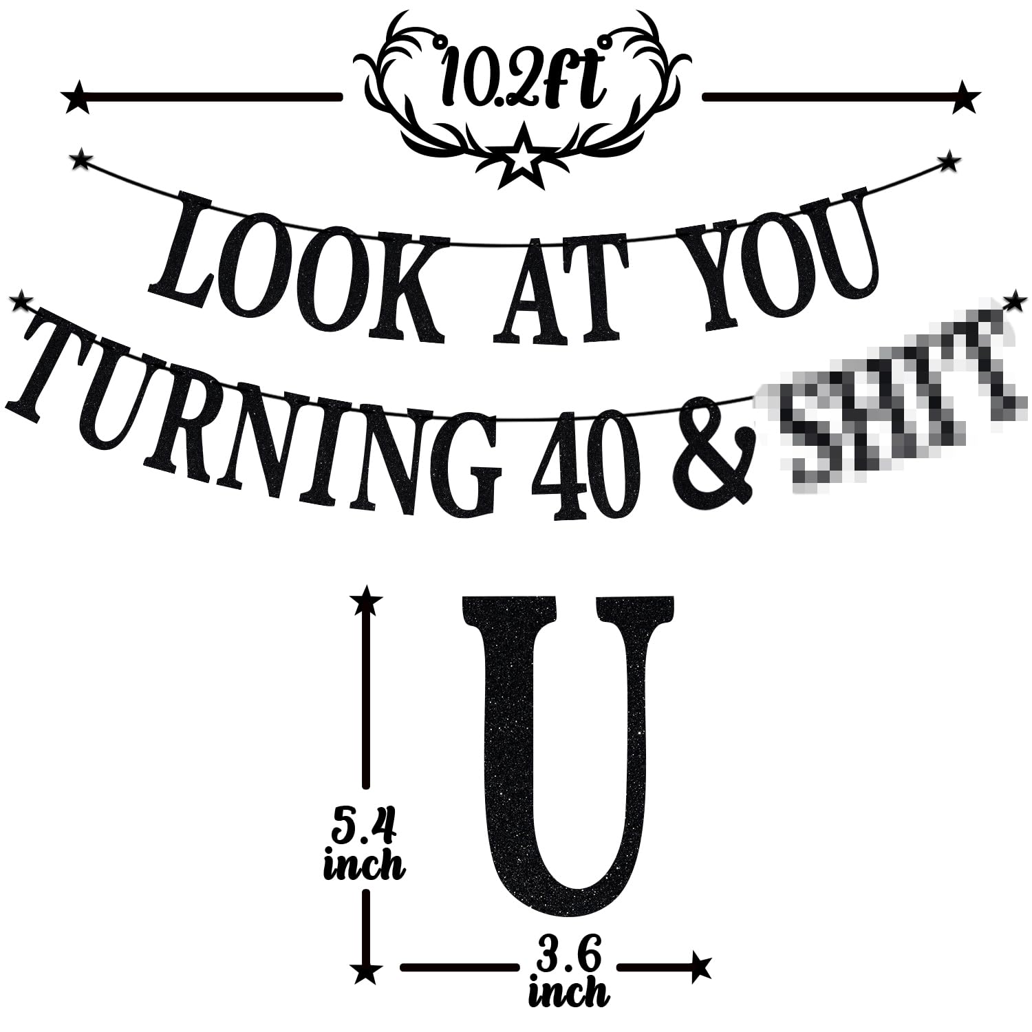 Received included: Letter cards spelling the phrase "Look at You Turning 40 & Sh*t". Awesome decorations: It is very suitable for the 40th Birthday party. Special party decorations can add an enjoyable and active atmosphere to these scenes, leaving a happy and unforgettable memory. High quality: Banners are made of glitter premium cardpaper. They are rigid and reusable. Easy to DIY: The card and the rope are separate, you only need to spend a little time to assemble. Choose us and believe us: We support the concept of customer first and product first. If the quality or damage occurs during transportation, we will solve it.