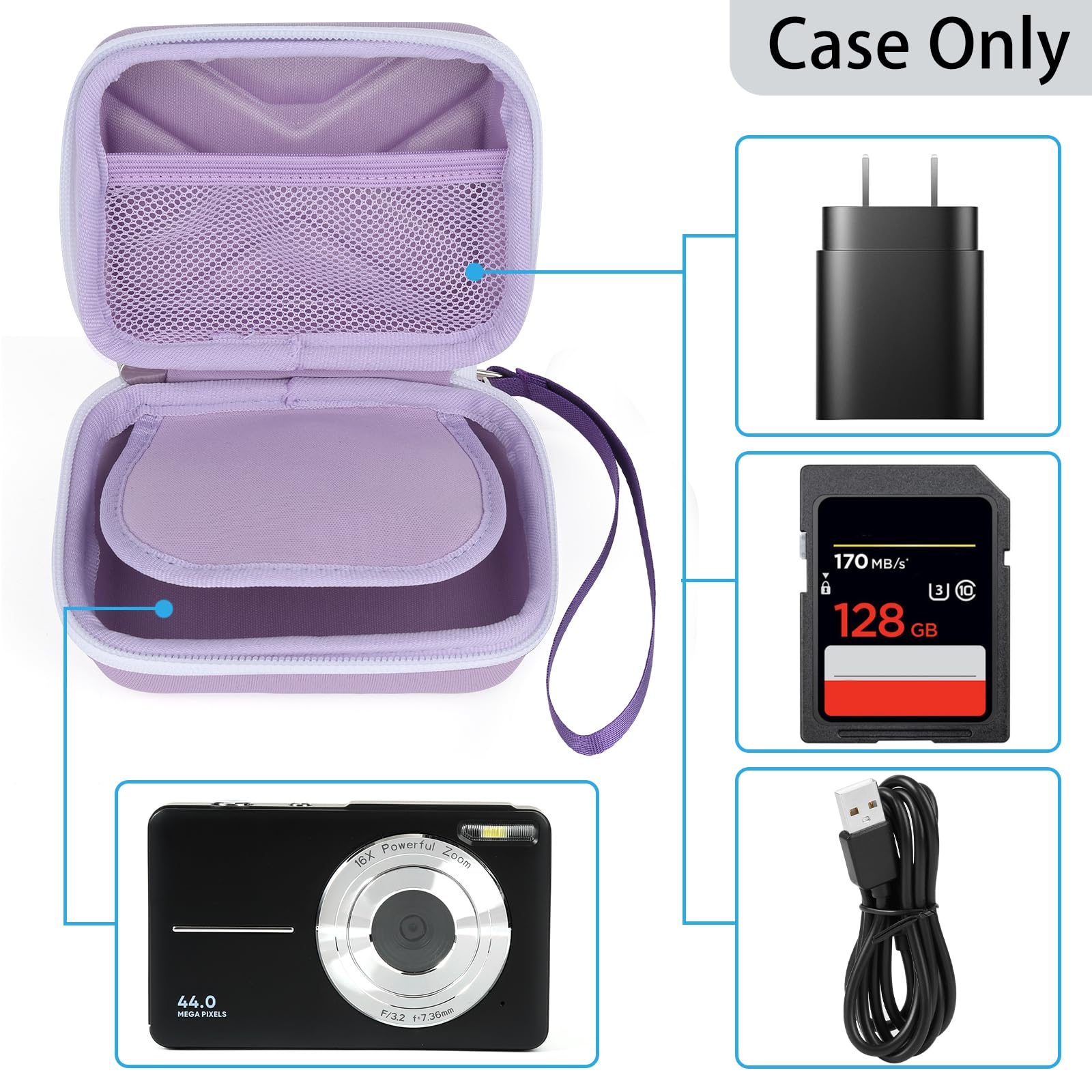 【Compact and Portable】Our camera case can accommodate the student digital camera with the limiting size of 4.9 in*3.5 in* 2.2 in, charger and USB cable, to meet your various kinds of needs.(case only)
