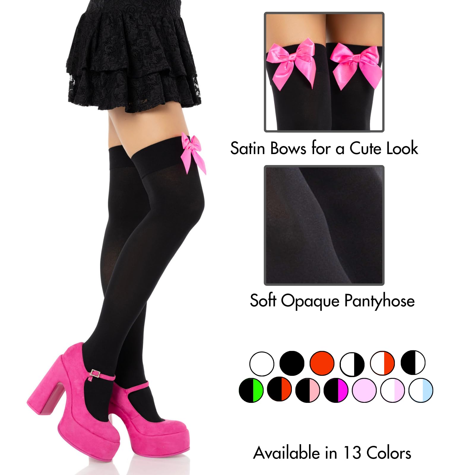 Take basic stockings and add a flirty touch; These opaque thigh highs with satin bow are next level gorgeous.