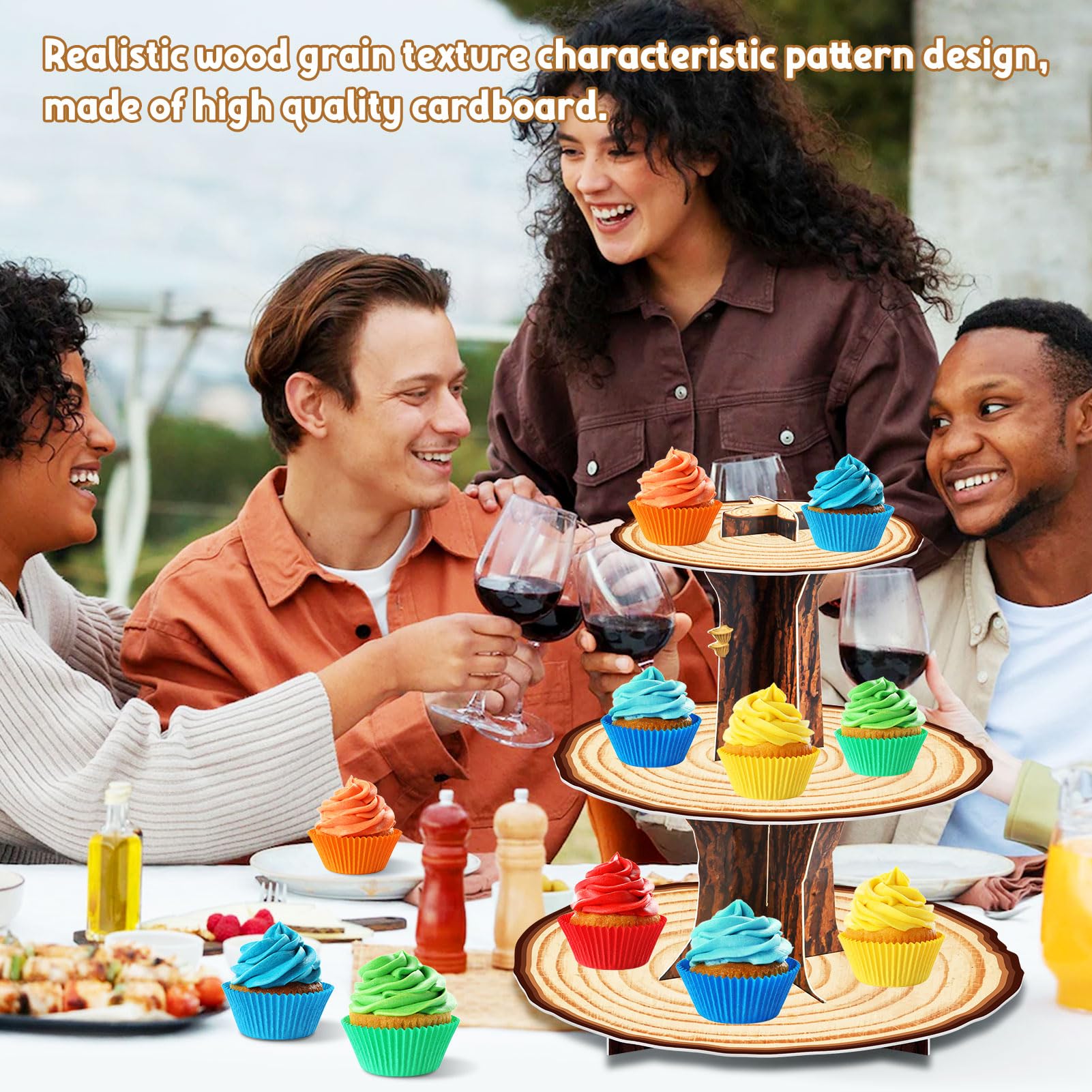Easy to Use: Our woodland birthday party decoration's dessert tower is no need to use any tools during assembly, just refer to the assembly steps on the picture; Thick cardboard is fixed between every two layers of cake stands, and the groove cut matches with the cardboard cut, whose detachable function will not take up your space, so you can enjoy your woodland party and life happily