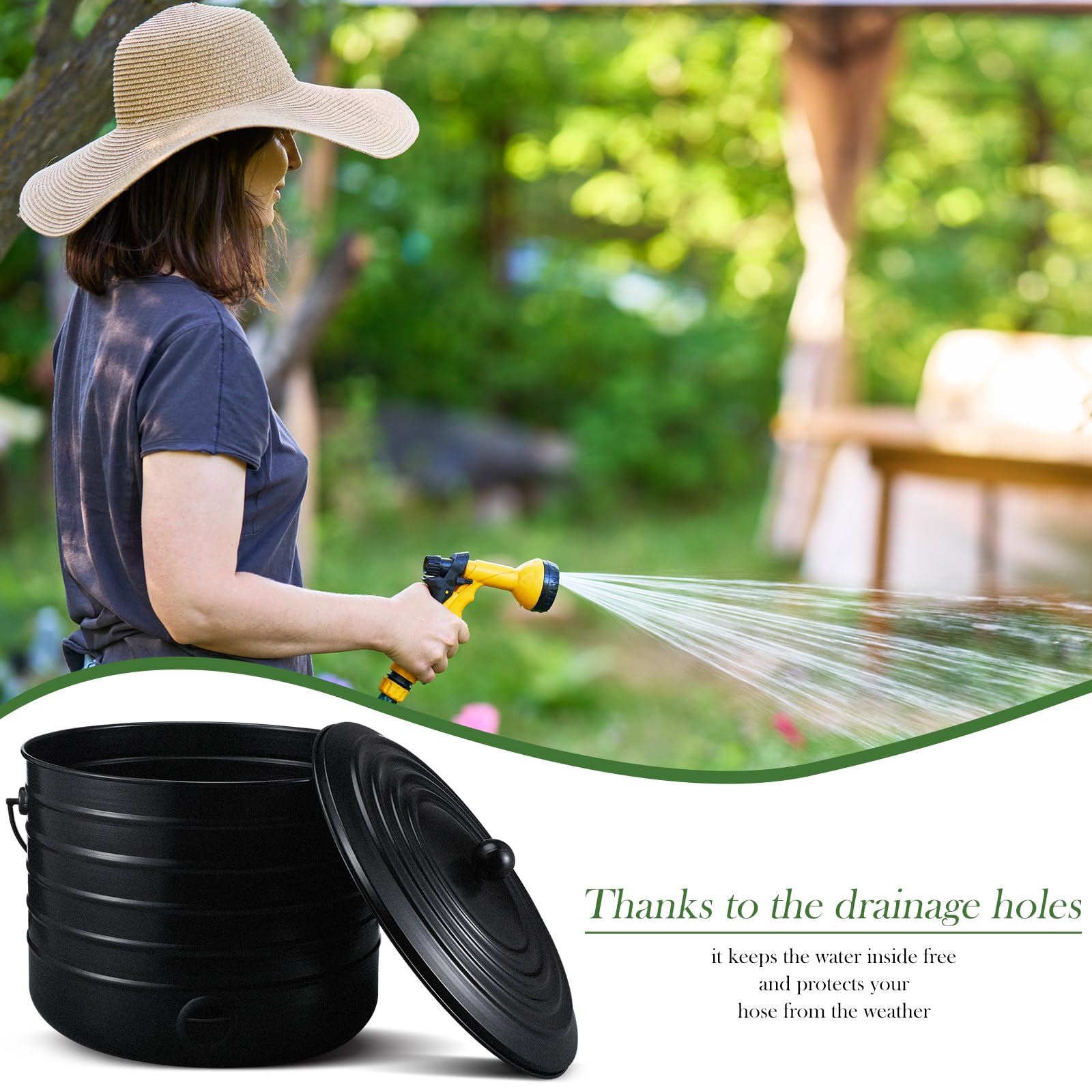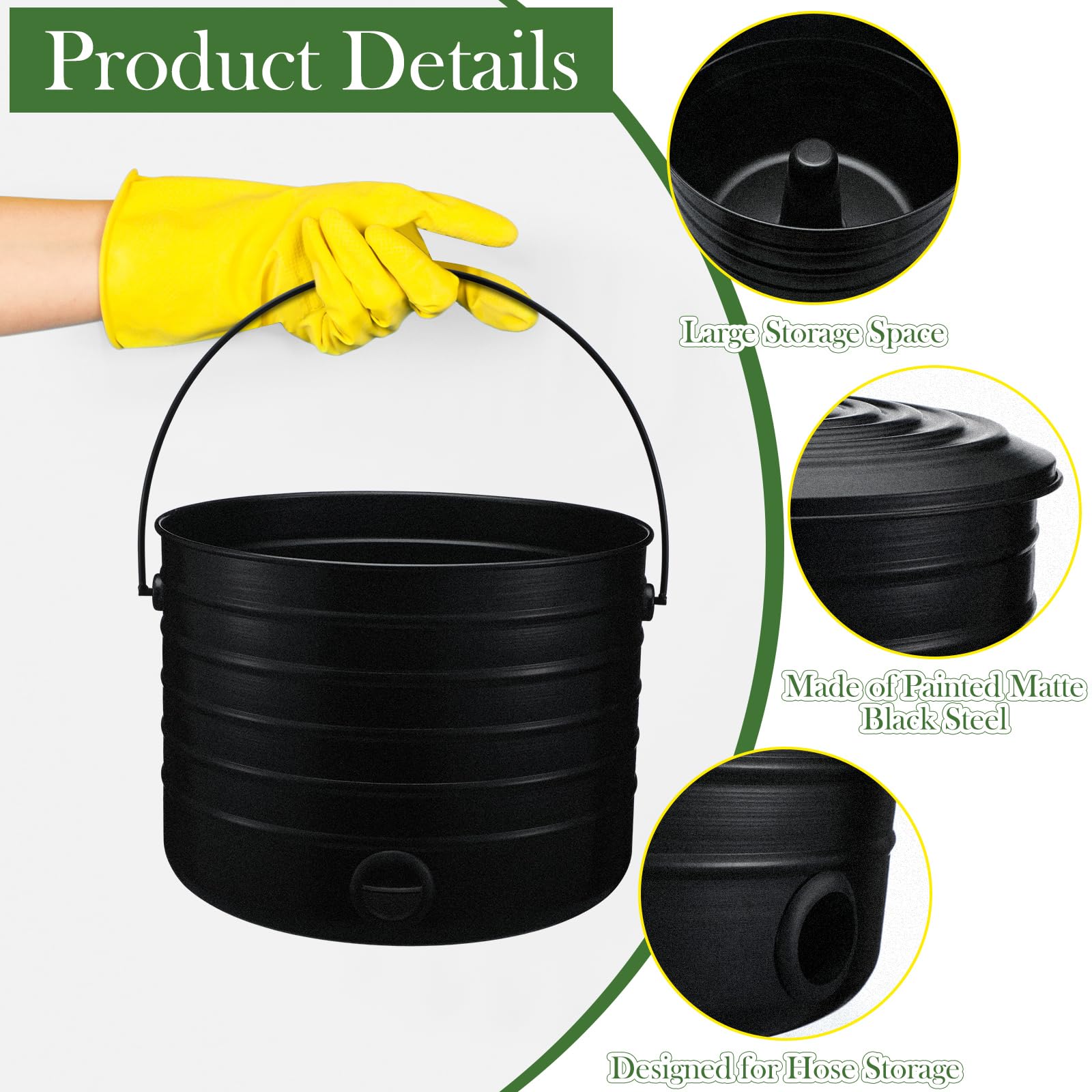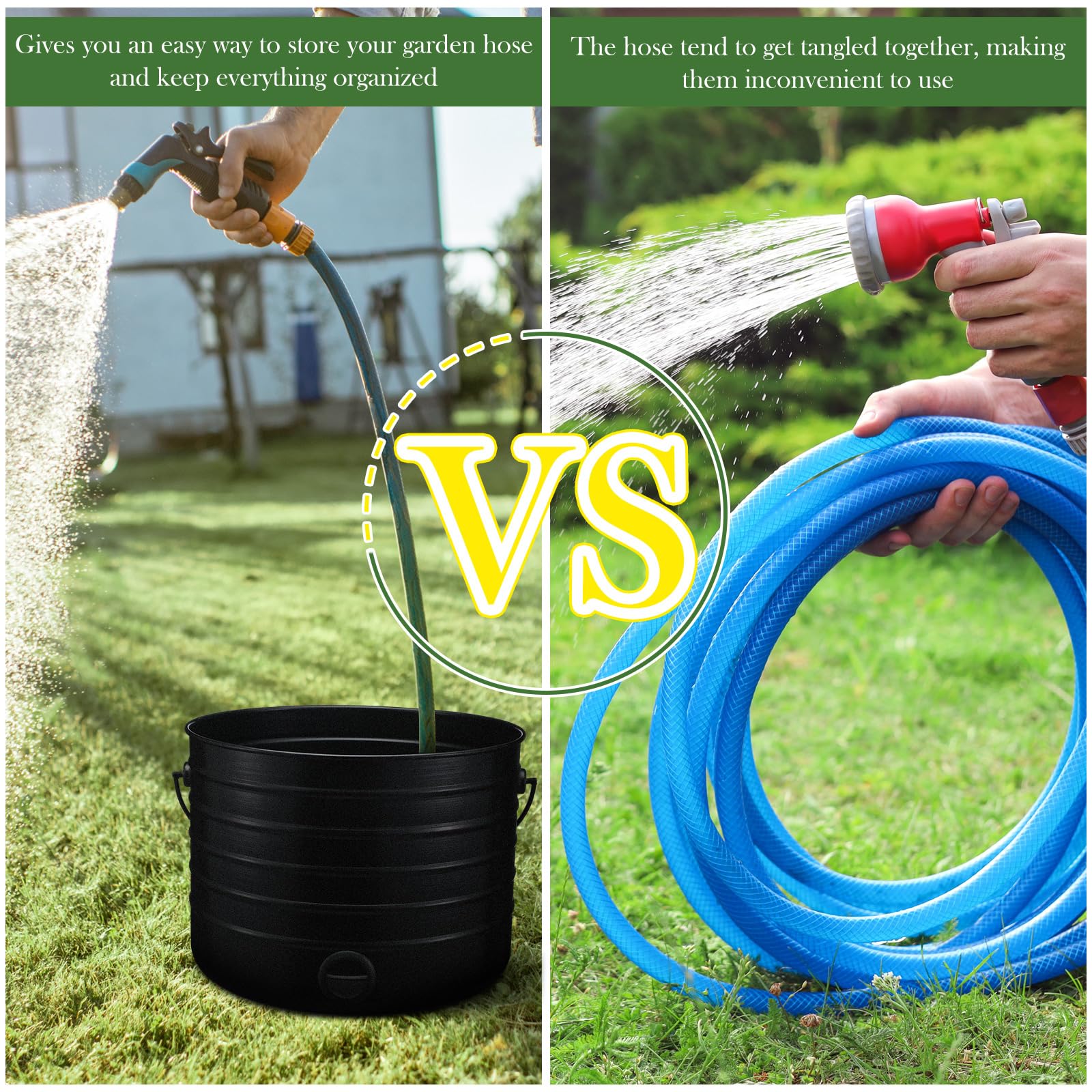 Durable Material: Made of painted matte black steel, our decorative hose storage pot is lightweight but sturdy, can withstand prolonged exposure to heat and humidity without rusting or fading. Gives you an easy way to store your garden hose and keep everything organized