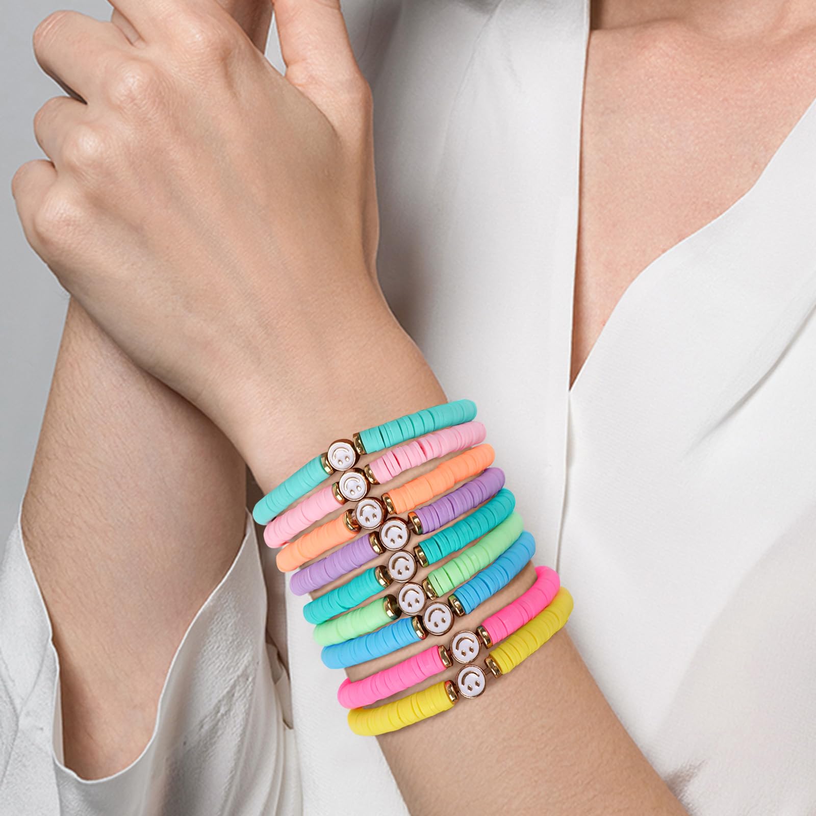 ✔️Preppy Beaded Bracelets Material: these preppy bracelet for women are mainly made of clay polymer, vinyl disc and beads; They are waterproof, not easy to fade, smooth and lightweight; you can wear colorful beaded stretch bracelets for a long time. The handmade stackable bracelets for women is checked one by one to guarantee perfect quality!