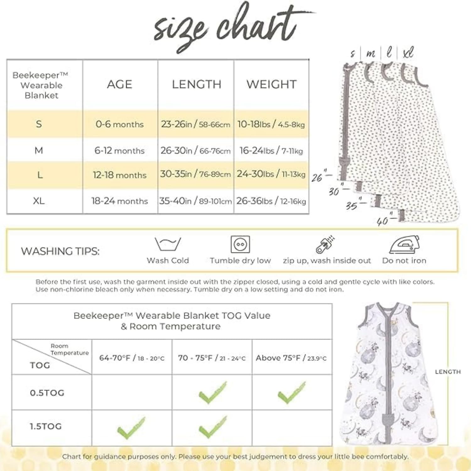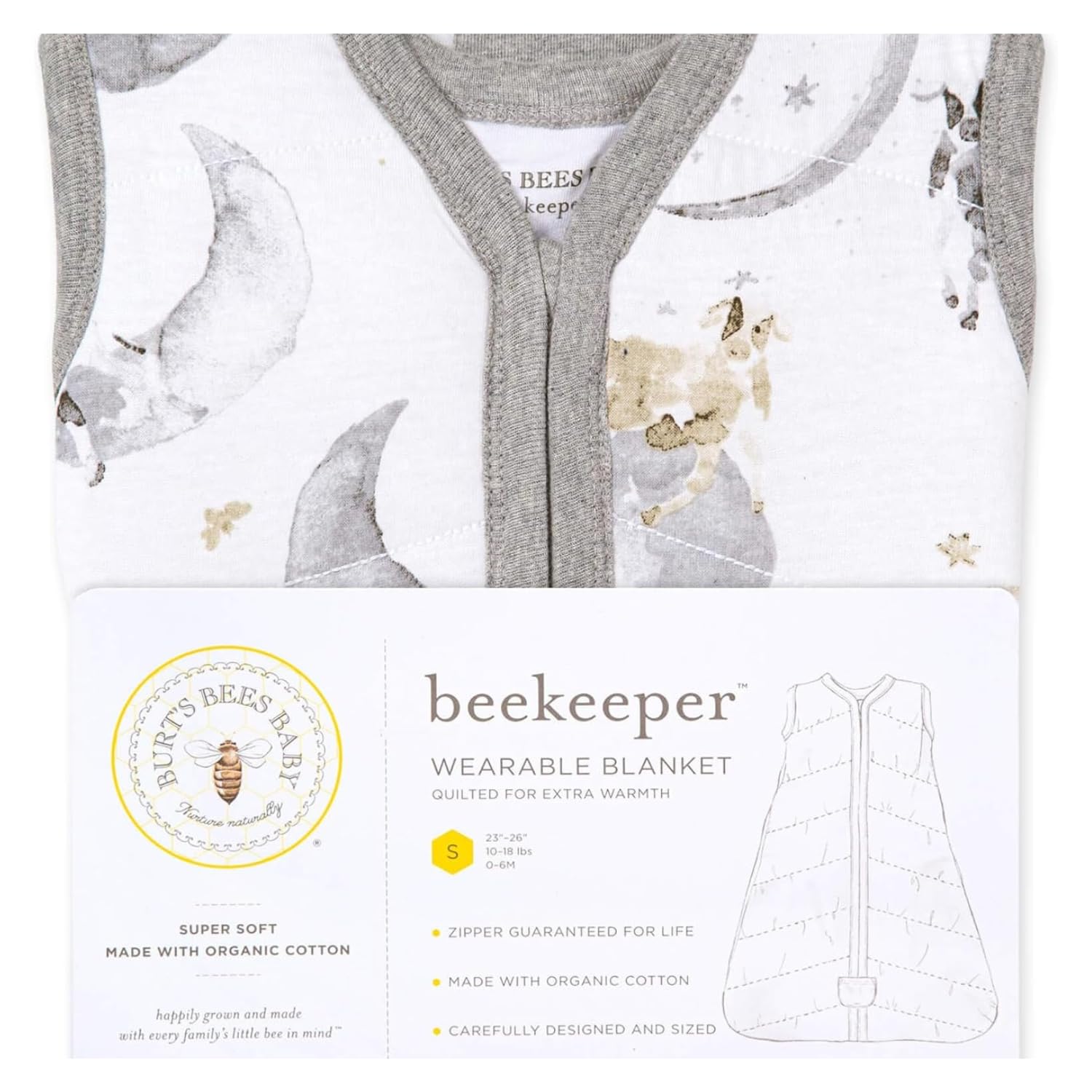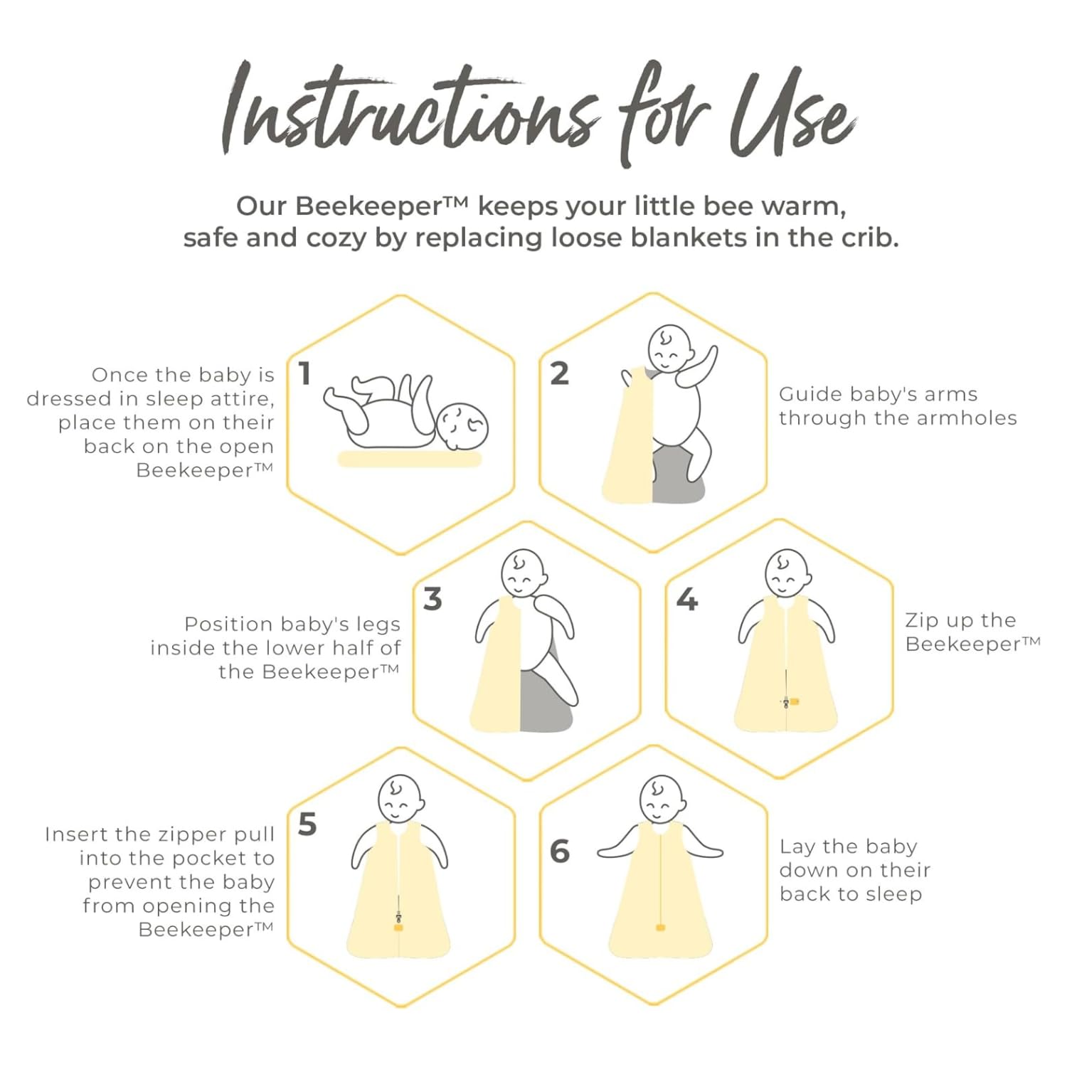 Our beekeeper baby wearable blanket features a durable zipper that opens from the bottom for quick diaper changes. Stylish, machine washable, and thoughtfully made.
