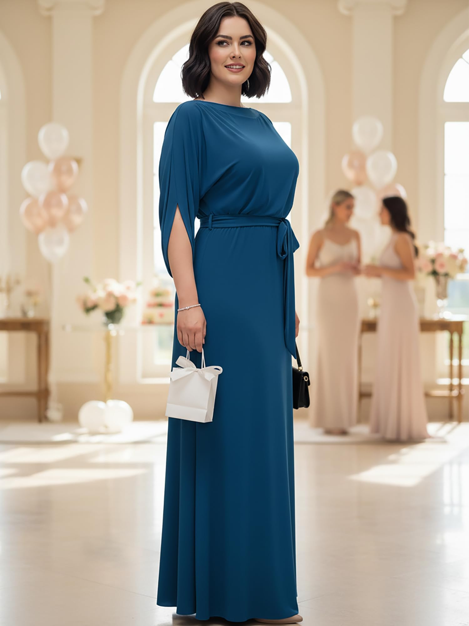 Semi-formal dresses; Capri Blue pregnancy baby shower maxi dress; wedding guest party dresses; mother of the bride or groom dresses; spring summer fall winter clothes; low wrinkle free dresses; 3/4 sleeve daytime dresses; special occasion