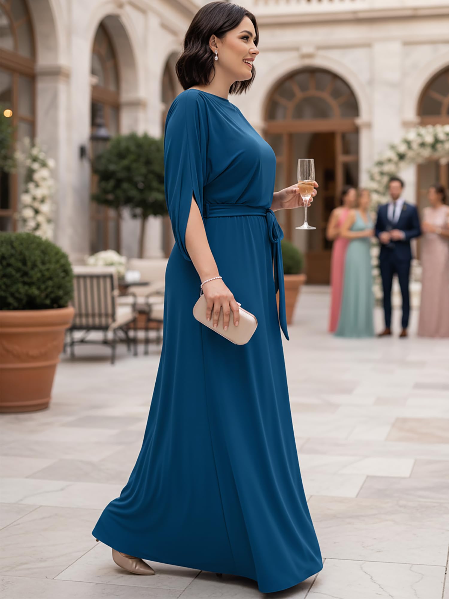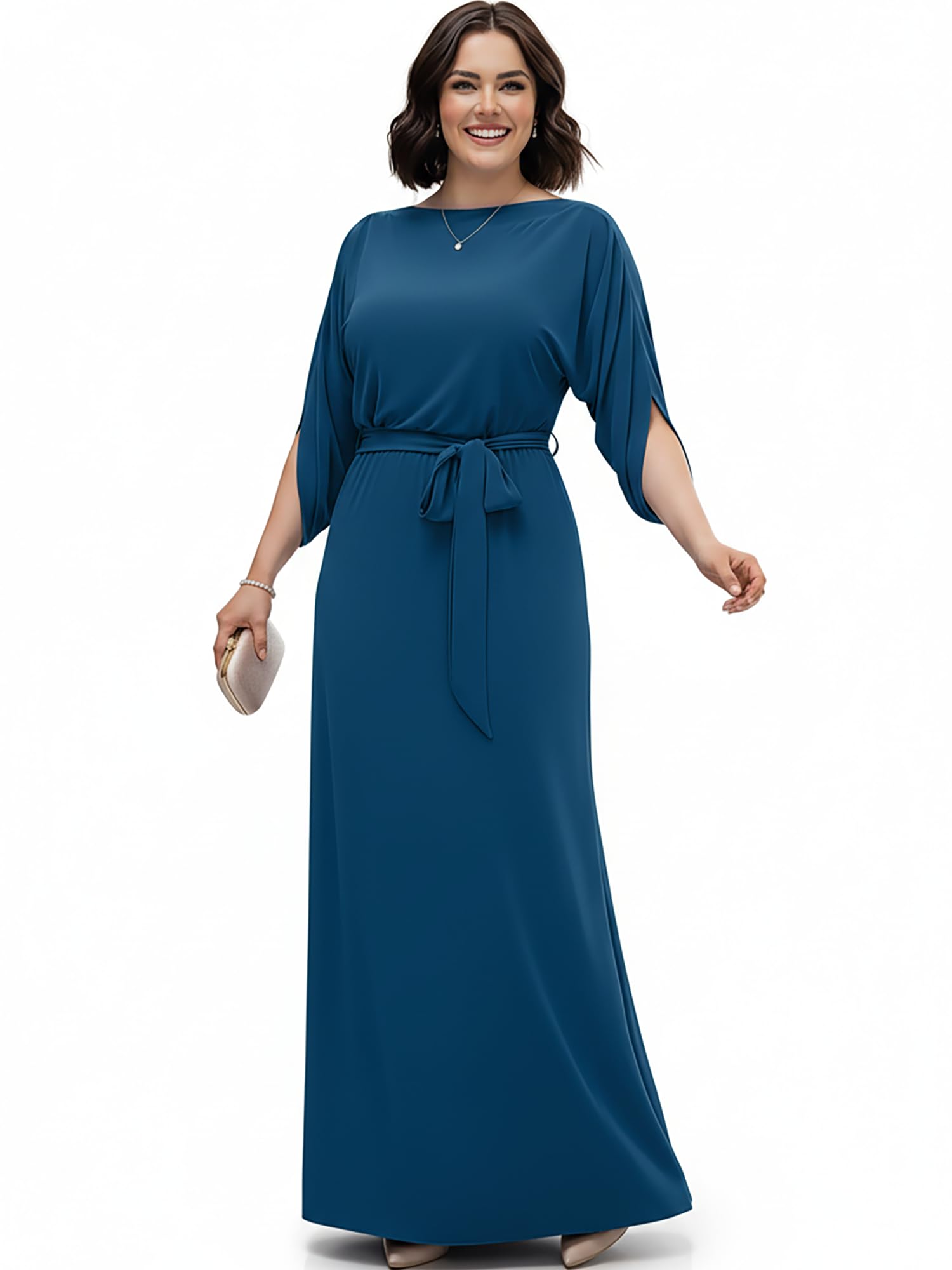 Casual Capri Blue half sleeve maxi dresses for women; chic classy stylish full length maxi's; work office outfits; dressy plus sized clothing; travel vacation holiday cruise solid color maxi dress; church choir funeral baptism gowns