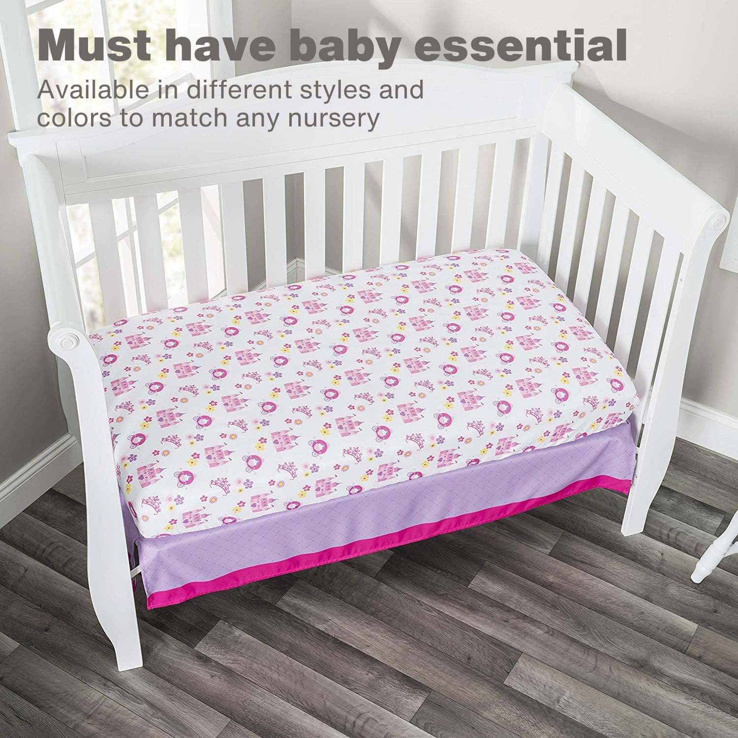PERFECT FIT β This fitted infant sheet is sized for a standard crib or toddler mattress (52 in. by 28 in.) and has been tested for the perfect fit. With full elastic trim all around 4 sides, this crib sheet is easy to use and safely securable with 8 in. deep pockets. (Mattress not included)
