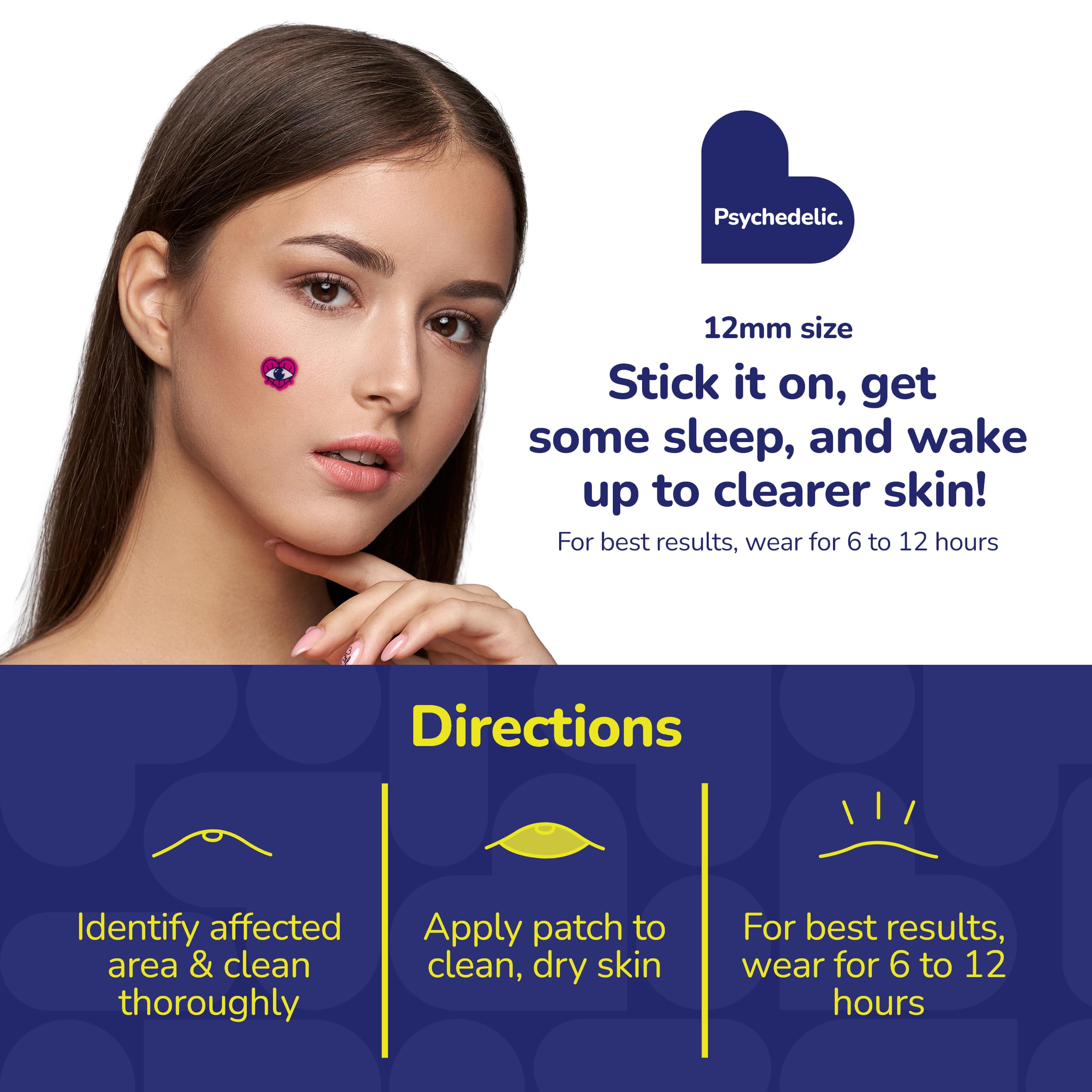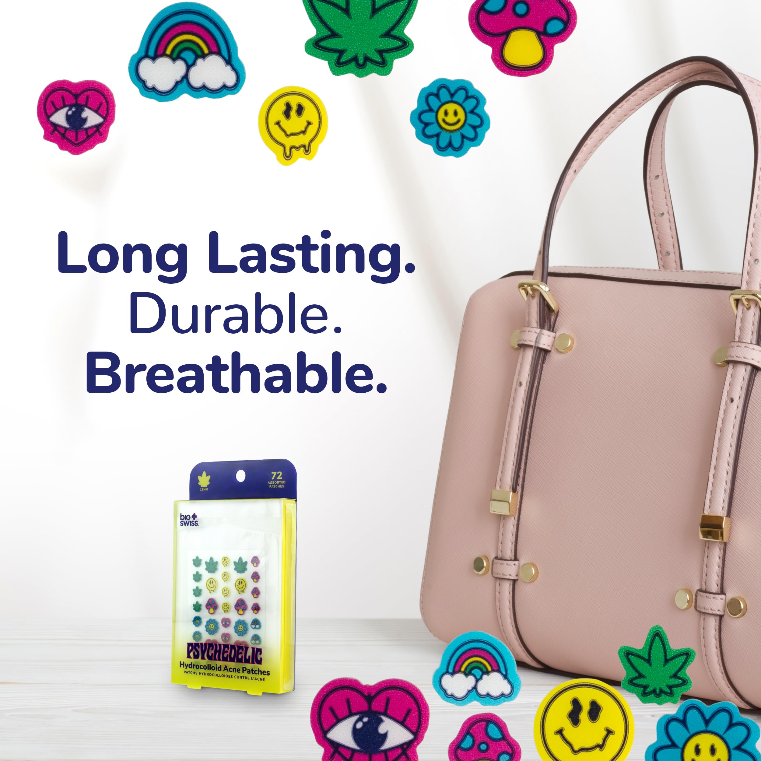 PSYCHEDELIC ACNE PATCHES: Tackle zits and blemishes effectively and achieve clear and smooth skin with our Psychedelic Acne Patches. Our patches for pimples come in 6 funny and cute assorted styles: Melted Smiley Face, Mushroom, Pot Leaf, Rainbow, Eyeball Heart, and Smiley Flower