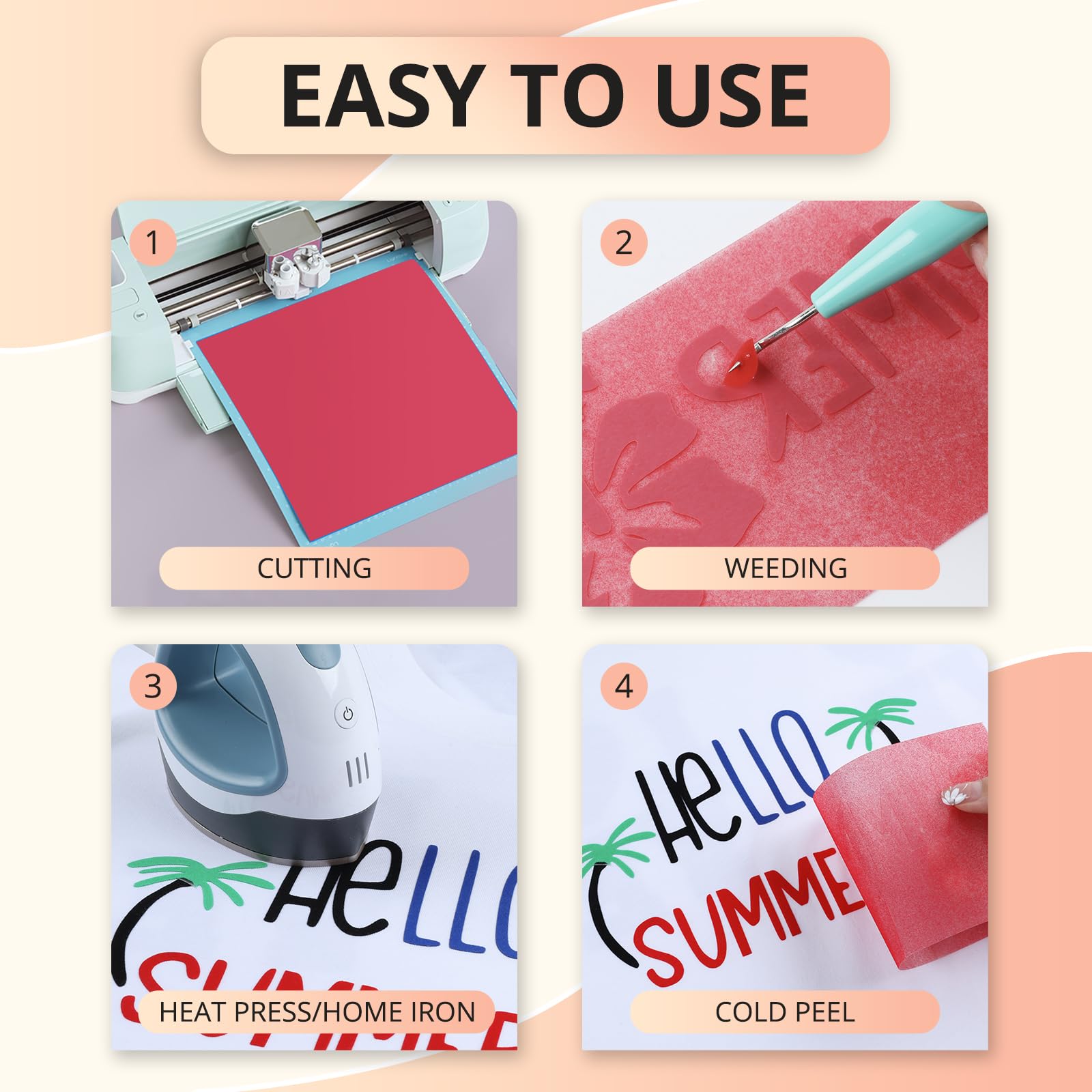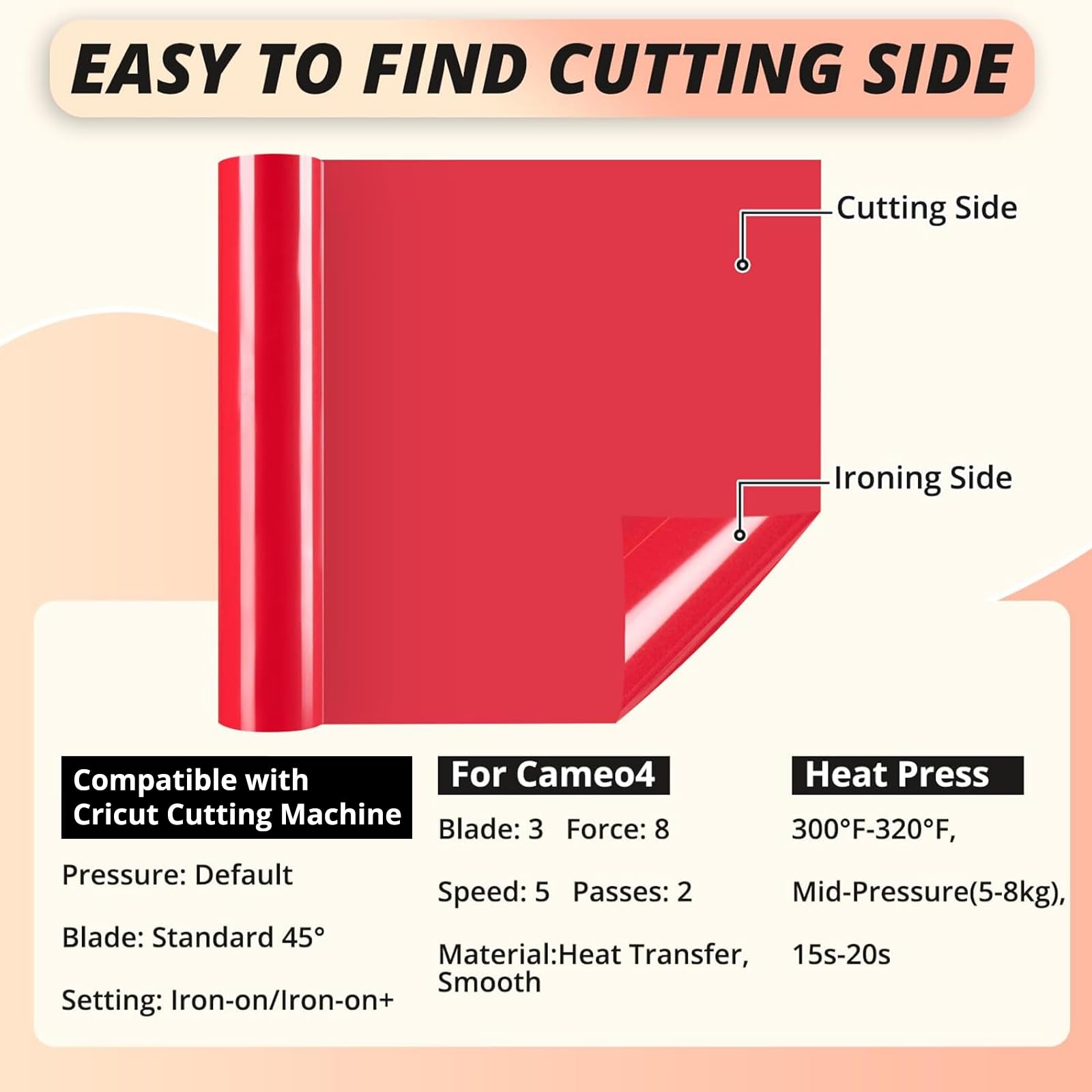 【EASY TO CUT & WEED & TRANSFER】Our premium quality red flocked htv vinyl will save your time which you may waste on each image or letter on large patterns, because you can cut and weed easily through the designs just right with suggested parameters.The flocked htv is sensitive to temperature and pressure, which can make the heat transfer preocess seemless on any fabrics easily. Note: Cold peel is suggested