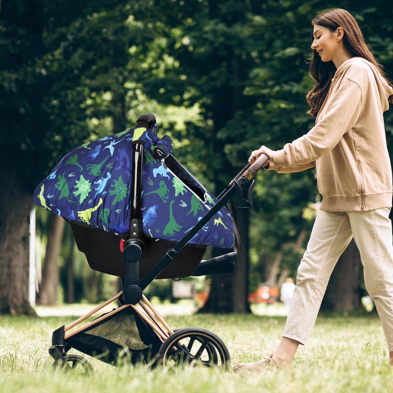 Soft & Comfortable Baby Car Seat Canopy: TANOFAR infant car seat cover is made from durable dinosaur polyester fabric and features a breathable, soft minky dot lining—combining style and comfort. This essential baby travel accessory offers medium thickness, making it ideal for year-round use. It ensures a cozy, protected sleeping environment for your baby