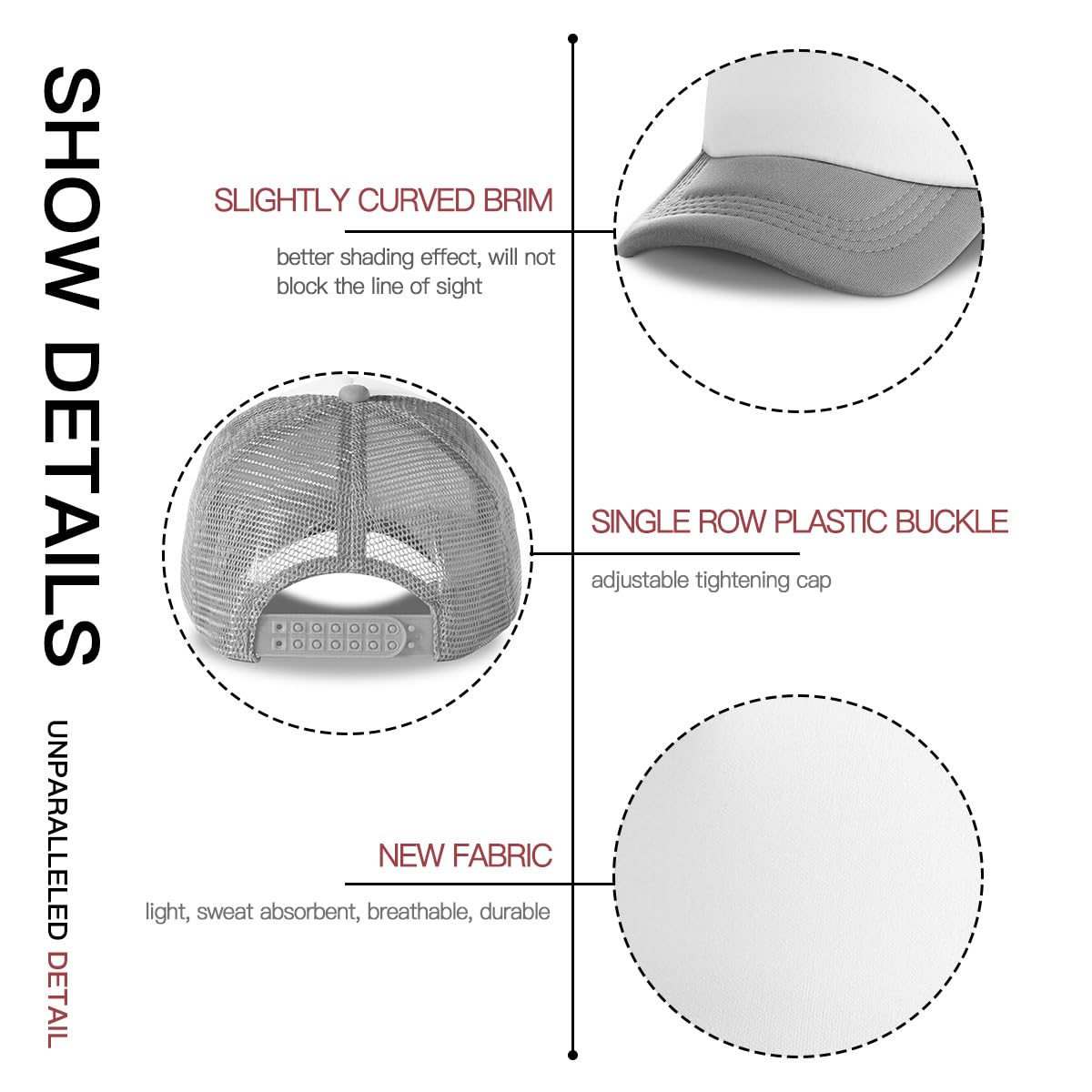 【Custom Trucker Hat Bulk】This Custom Trucker Hat Mesh Baseball Cap Is Made Of Polyester And Polyester Mesh Back Giving You A Soft Touch.The Has Good Ventilation.Adjustable.