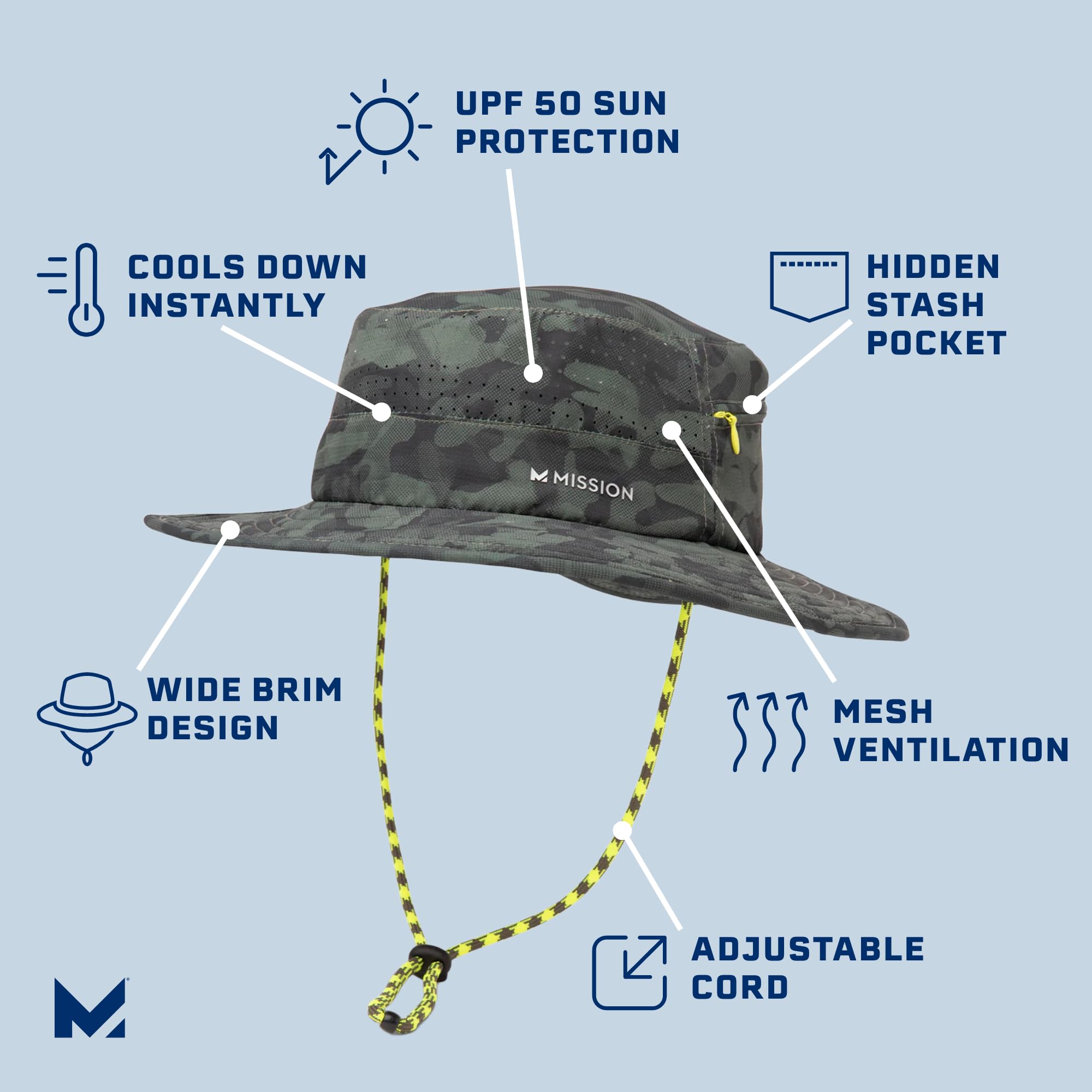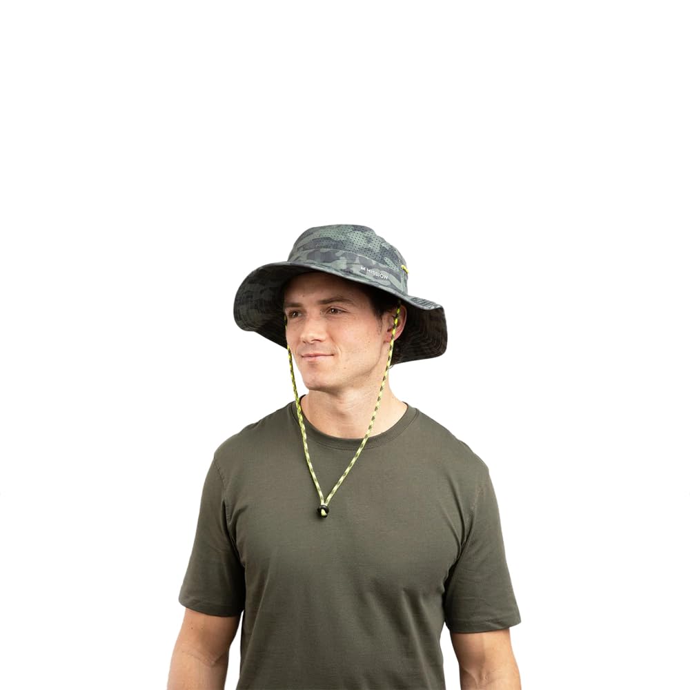 PERFORMANCE FEATURES - Lightweight and breathable, this wide-brim hat with mesh venting provides UPF 50 sun protection & a chemical-free band for cooling and sweat management. Plus, it includes an adjustable chin cord for a perfect fit.