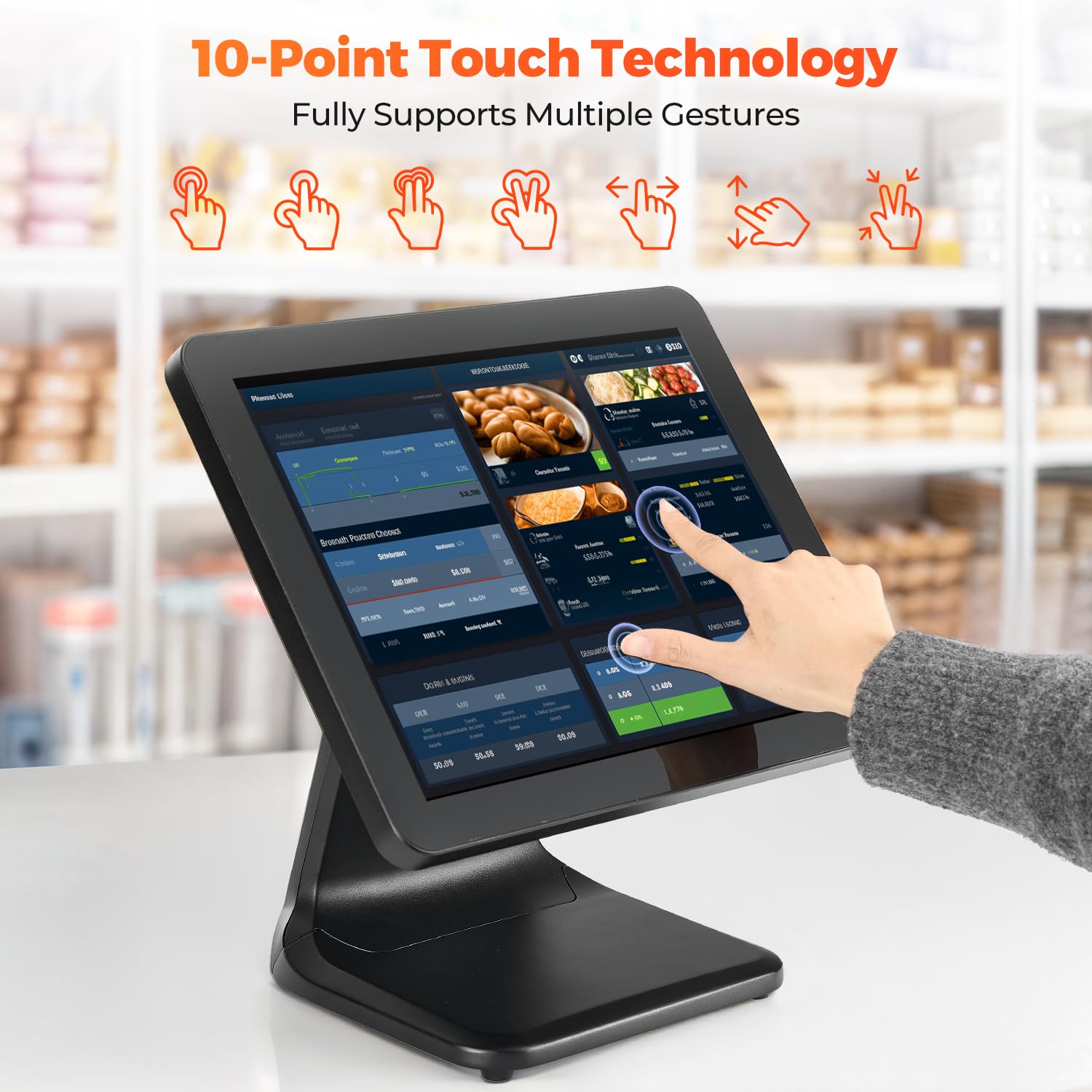 [Sturdy & Stable] Unlike many standard plastic stands on the market that can easily wobble with frequent use, the MUNBYN pos touch screen features a heavy-duty metal base designed to provide maximum stability. This robust construction effectively eliminates the common issue of shaking during touches, ensuring a steady and reliable performance in high-traffic environments.