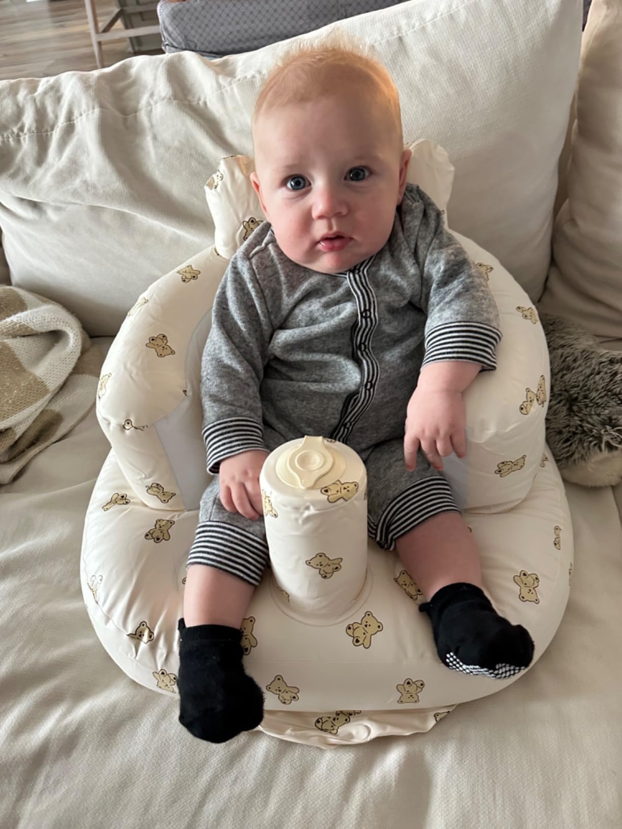 【Ideal Growth Partner for baby】The inflatable infant support seat adopted an exquisite adorable cartoon animal pattern design and bright colors, which has a good decorative effect and ultimately attracts the baby's attention and stimulates the baby's interest. It is a fancy baby shower gift for expectant mothers or newborn parents, This newborn baby gift is the best choice for a baby, Christmas gifts, birthday gifts, Mother’s Day gifts, Thanksgiving Festival gifts, New Year gifts, etc