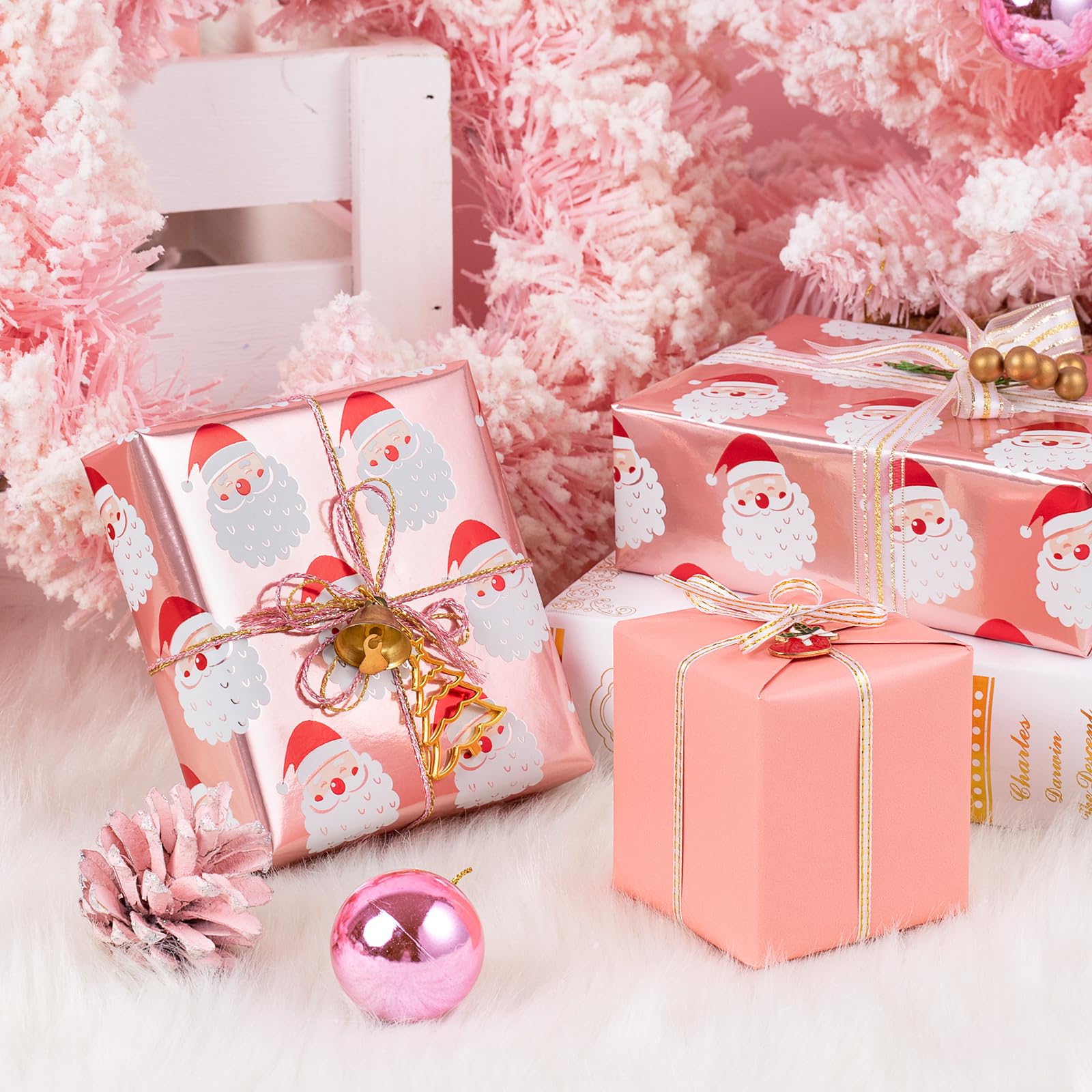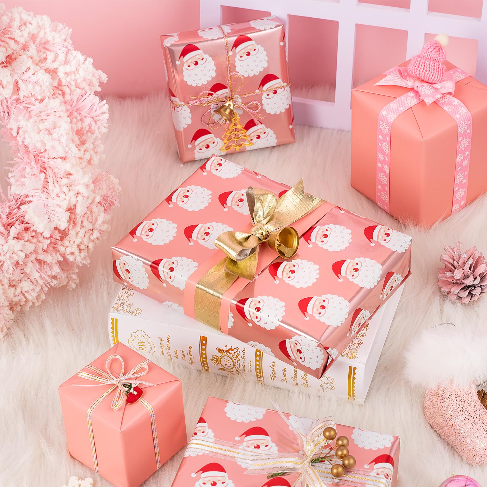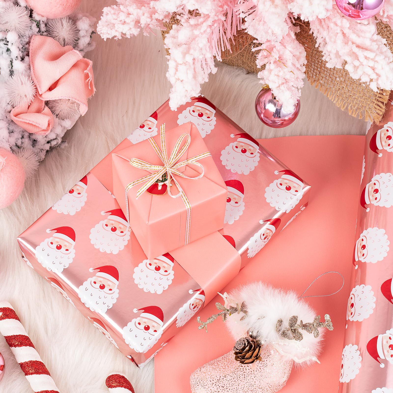 Reversible Design: Santa Claus printed on one side, solid rose gold printed on the reverse. Two different designs make unique and varied gift presentations easy.