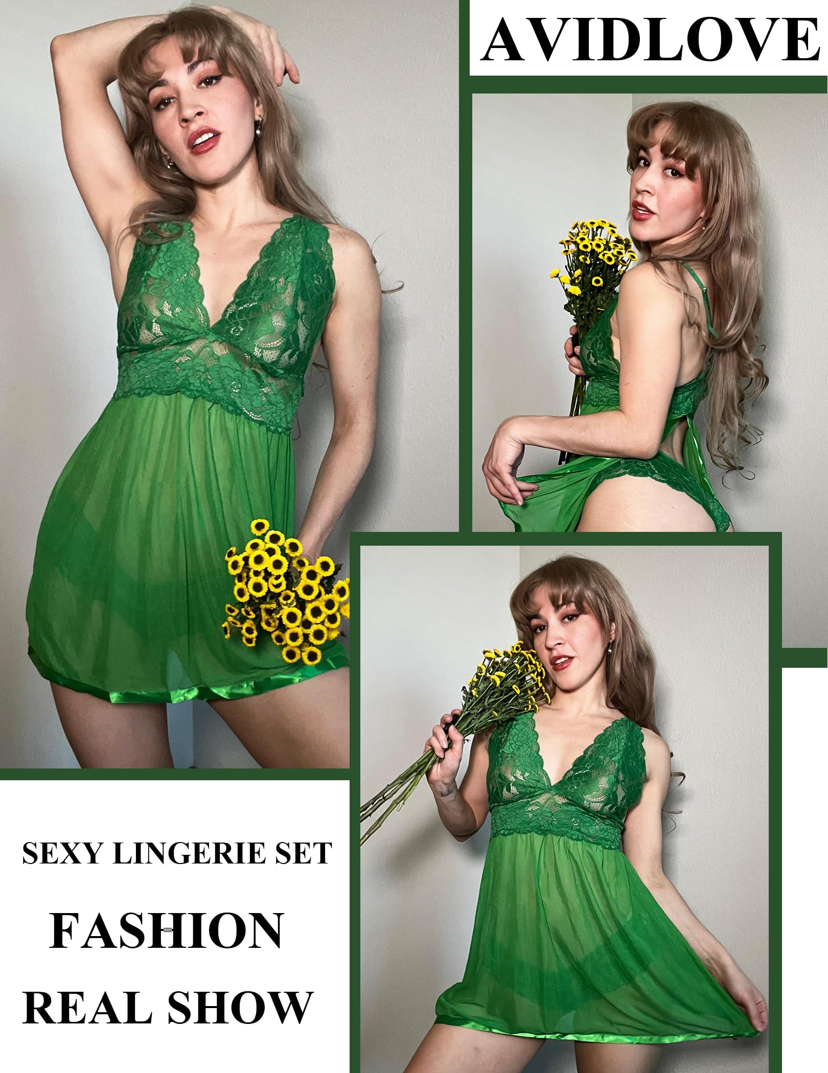 【Material】This avidlove babydoll lingerie set is made of floral lace and mesh fabric,featuring great elastic,soft & skin-friendly,durable and pill-resistant.The see-through mesh lingerie sleepwear creates a mysterious range and add charm to intimate moments moments