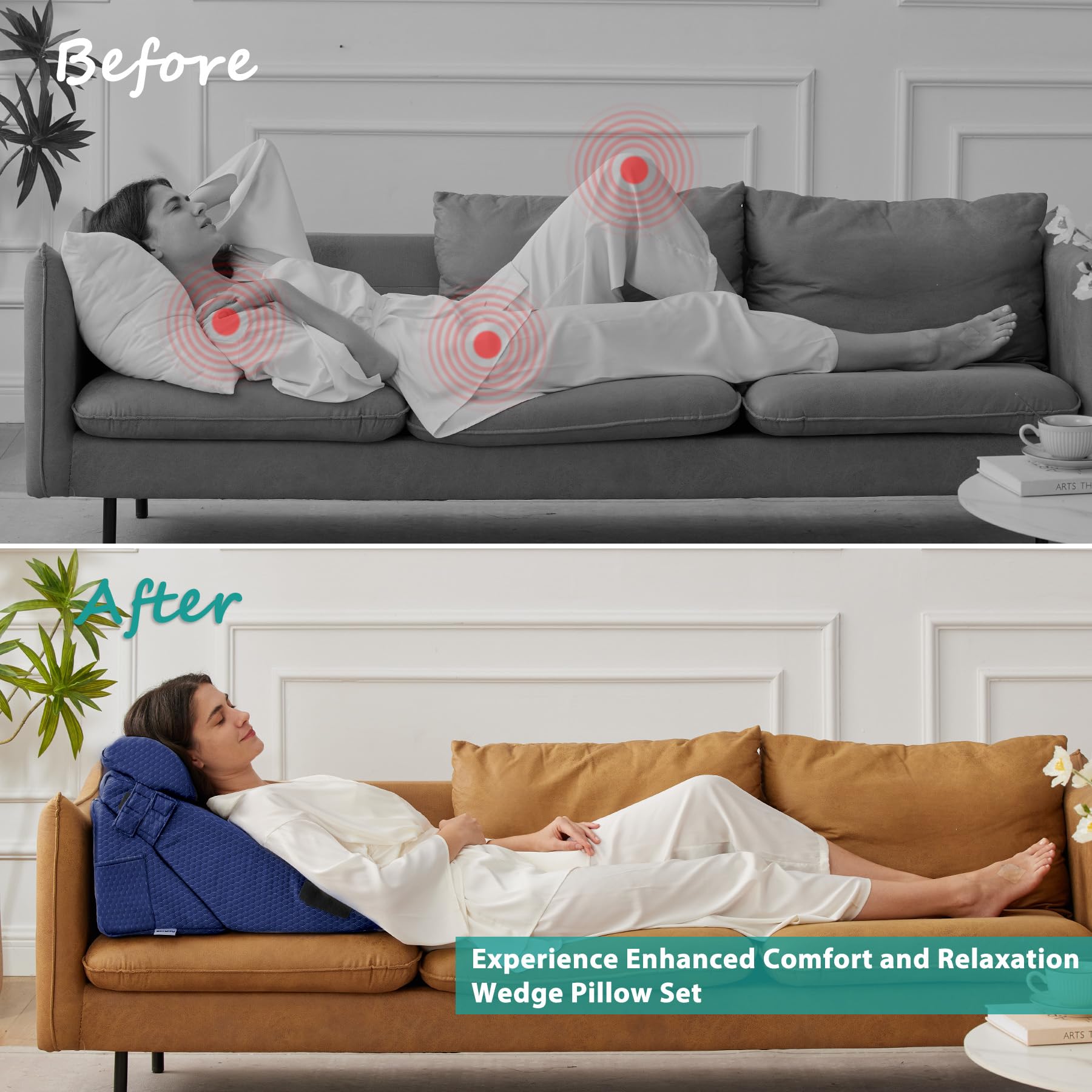 Enhanced Health Support: Designed for improved blood flow, breathing, and reduced snoring, the ergonomic wedge pillow system aid recovery post-surgery, alleviate knee, back and leg pain.