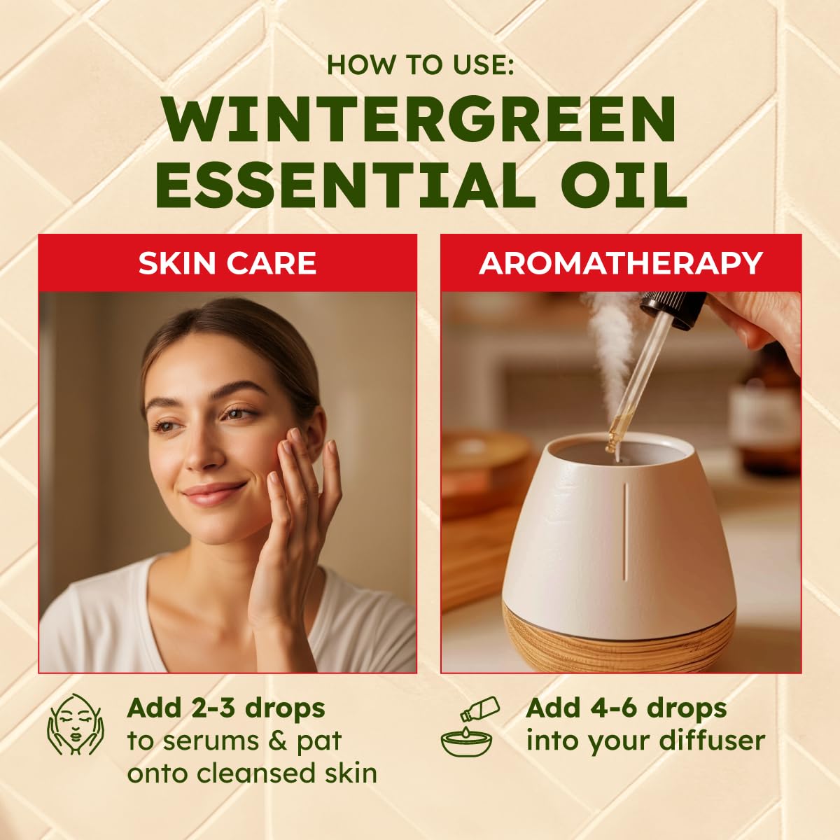 Gleam in smooth-looking complexions. Wintergreen essential oil for skin adds a nurturing touch to potentially moisturize and restore smoother-looking skin. Add essential oils for skin wintergreen to skincare regimens to nourish dull-looking skin.