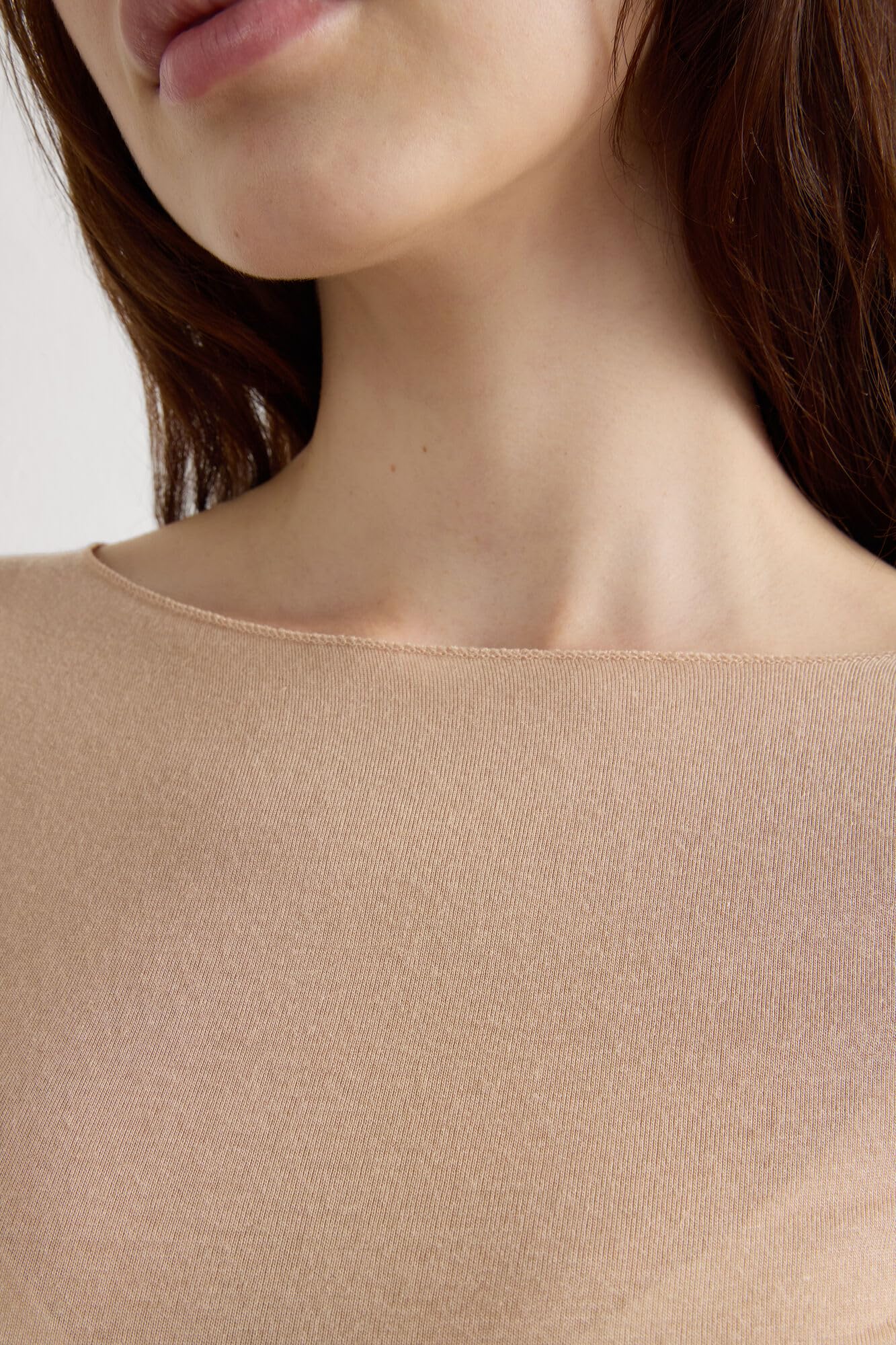 Description Experience the perfect blend of luxury and versatility with our cashmere boat neck top. Crafted from ultralight modal and cashmere, this sheer boat neck top offers an incredibly soft and breathable feel, making it ideal for layering or wearing on its own. The elegant boat neckline frames the shoulders beautifully, adding sophistication to any outfit. The ultralight material’s sheer nature gives it a delicate and refined look, perfect for creating effortlessly chic ensembles. We recommend pairing it with our Ultralight Microfiber Top for added coverage while maintaining a sleek silhouette. Designed for a slim fit, the cashmere boatneck top offers gentle stretch for comfort while flattering your figure. Ideal for transitional seasons, this lightweight cashmere boat neck shirt provides warmth without bulk, making it a wardrobe essential. Available in versatile colors, it’s perfect for styling with high-waisted trousers or layering under blazers for an understated yet daring look.