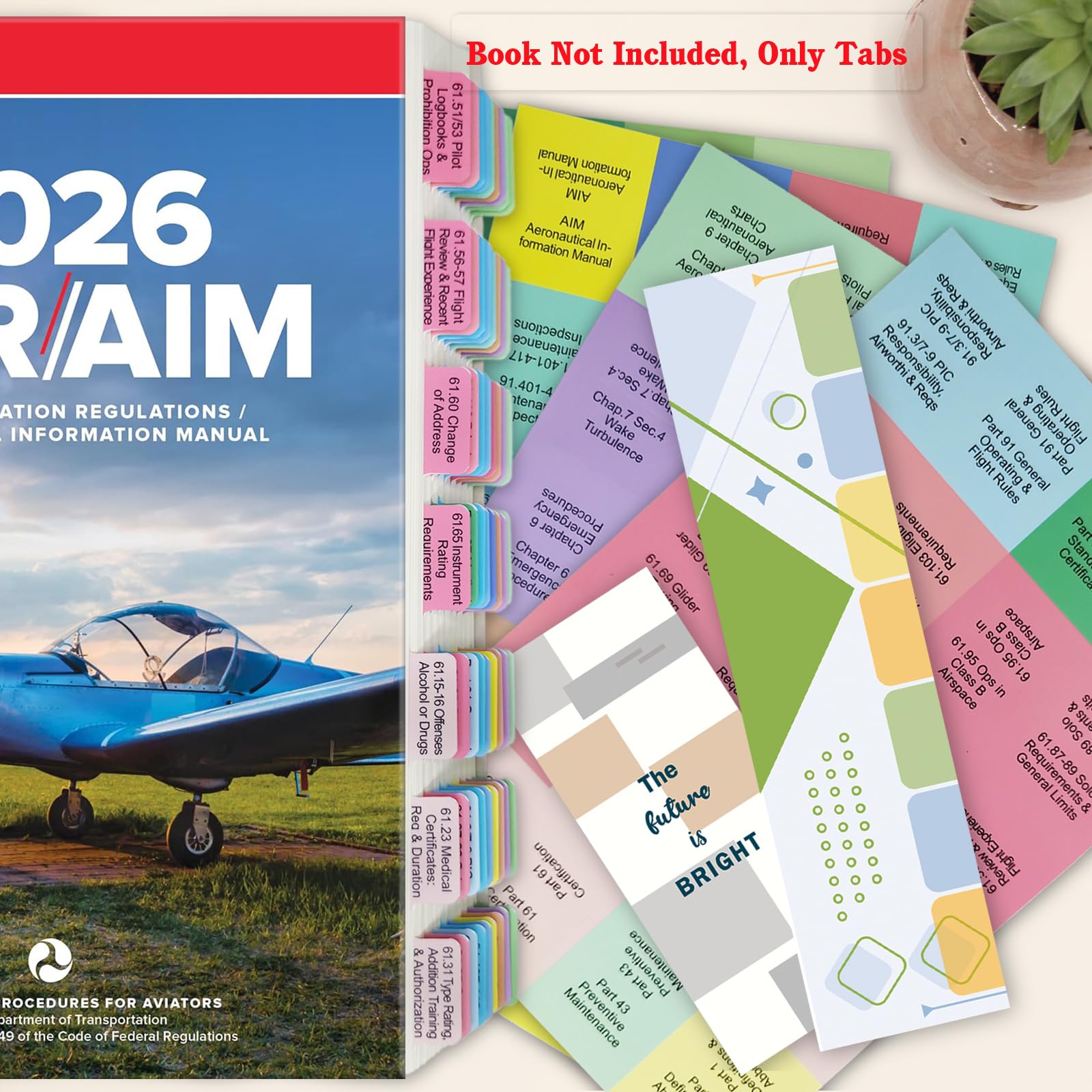 Private Pilot Index Tabs for 2026 FAR/AIM This Index Tabs Set is to highlight the most pertinent sections of FAR/AIM,especially for those who want to study FAR/AIM to pass the FAA Knowledge, Oraland Practical Tests. The well-organized tabs will help you find different sectionsquicky, save your time and make your study more efficient. Package Includes: 80 Index Tabs with 12 blank ones + 1 AlignmentGuide + 1 Bookmark