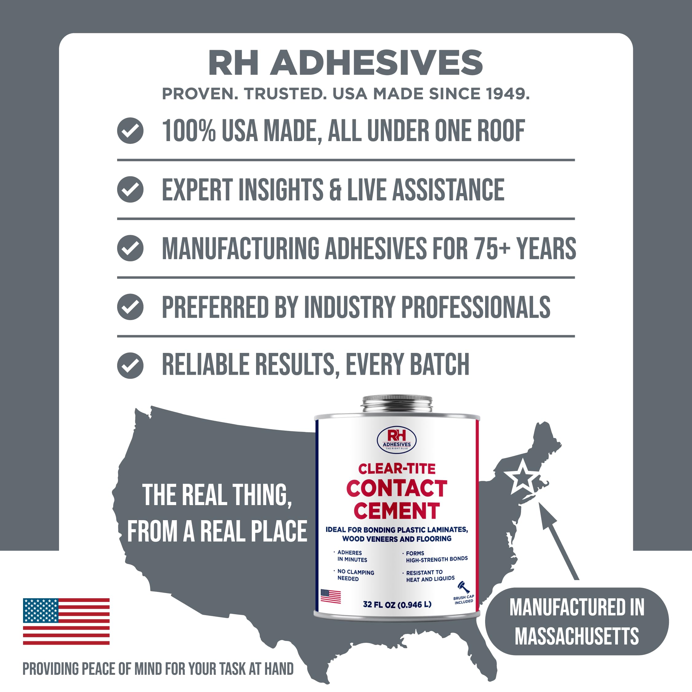 High Temperature Adhesive - We've designed the Clear-Tite Contact Cement formula to maintain its bond at extremely high temperatures up to 250 degrees Fahrenheit, creating a long lasting bond without sacrificing performance strength