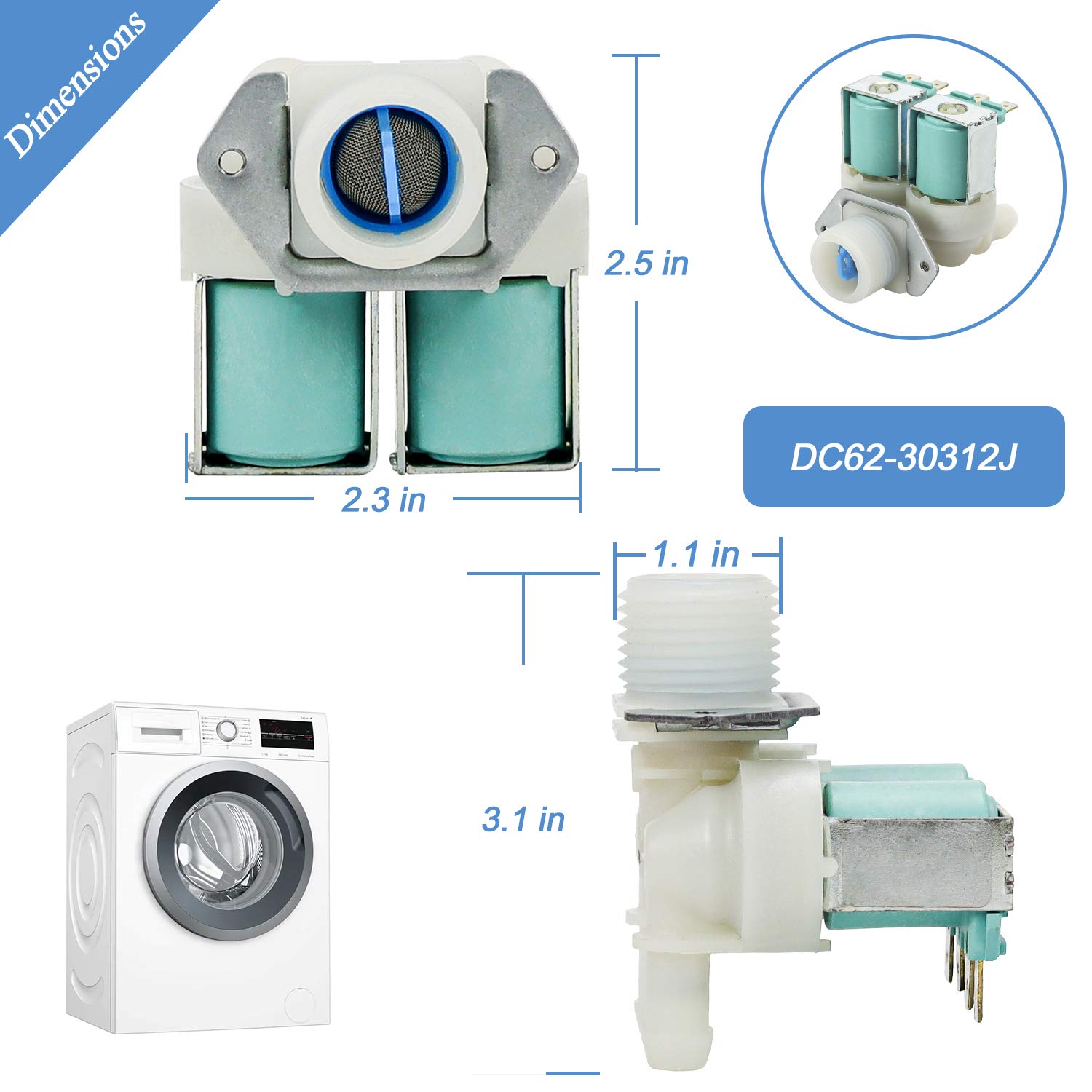 COMPATIBLE WITH: our #sam-dc62-30314k and sam-dc62-30312j water inlet valve fit modols WF306BHW WF306BHW/XAA WF306LAW WF306LAW/XAA WF316BAC WF316BAC/XAA WF316BAW WF316BAW/XAA WF316LAS WF316LAS/XAA WF316LAW WF316LAW/XAA 592-49396 592-49474 592-49496 WF328AAG/XAA WF328AAG/XAA WF328AAR/XAA WF328AAW/XAA WF328AAW/XAA WF330ANB/XAA WF330ANB/XAA WF330ANB/XAA WF330ANB/XAA