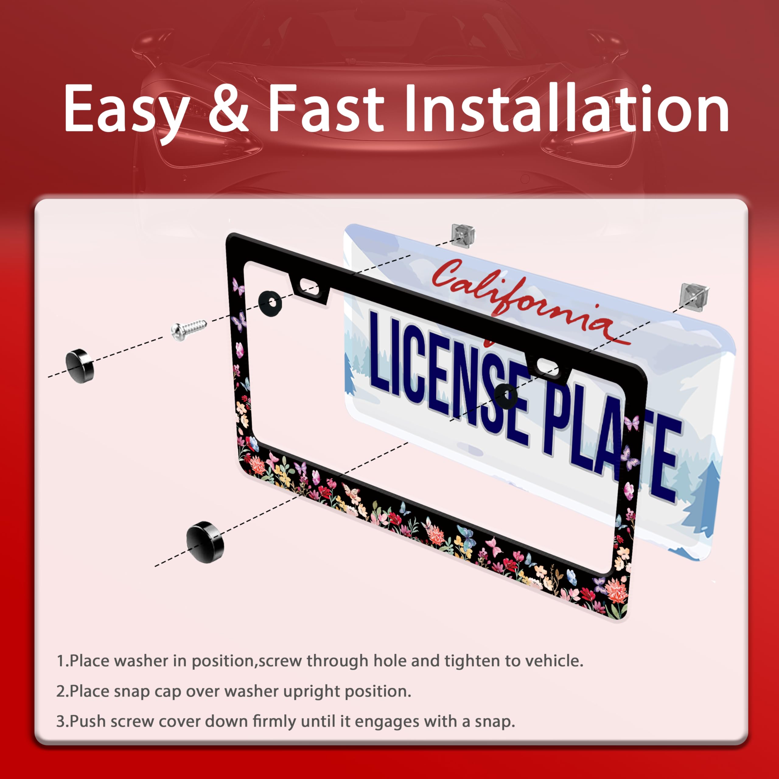 Stainless Steel License Plate Frame Fashionable And Avant-Garde Design: Using Advanced Printing Technology, Personalized Patterns, Rich Colors And Brighter Vision. Dimensions: 12.2 X 6.3 Inches, 31 X 16 Cm. Compatible With All Standard Us And Canadian Vehicles Mounting Accessories: 1 X License Plate Frame With Screws, Washers, Screw Caps, Complete With Accessories. Easier Installation: It Only Takes A Few Minutes To Install Easily. The License Plate Frame Can Be Installed On Your Front/Rear License Plate To Decorate Your Car. Easy To Clean: can be lightly wiped with a towel and detergent, can also be disassembled for cleaning.