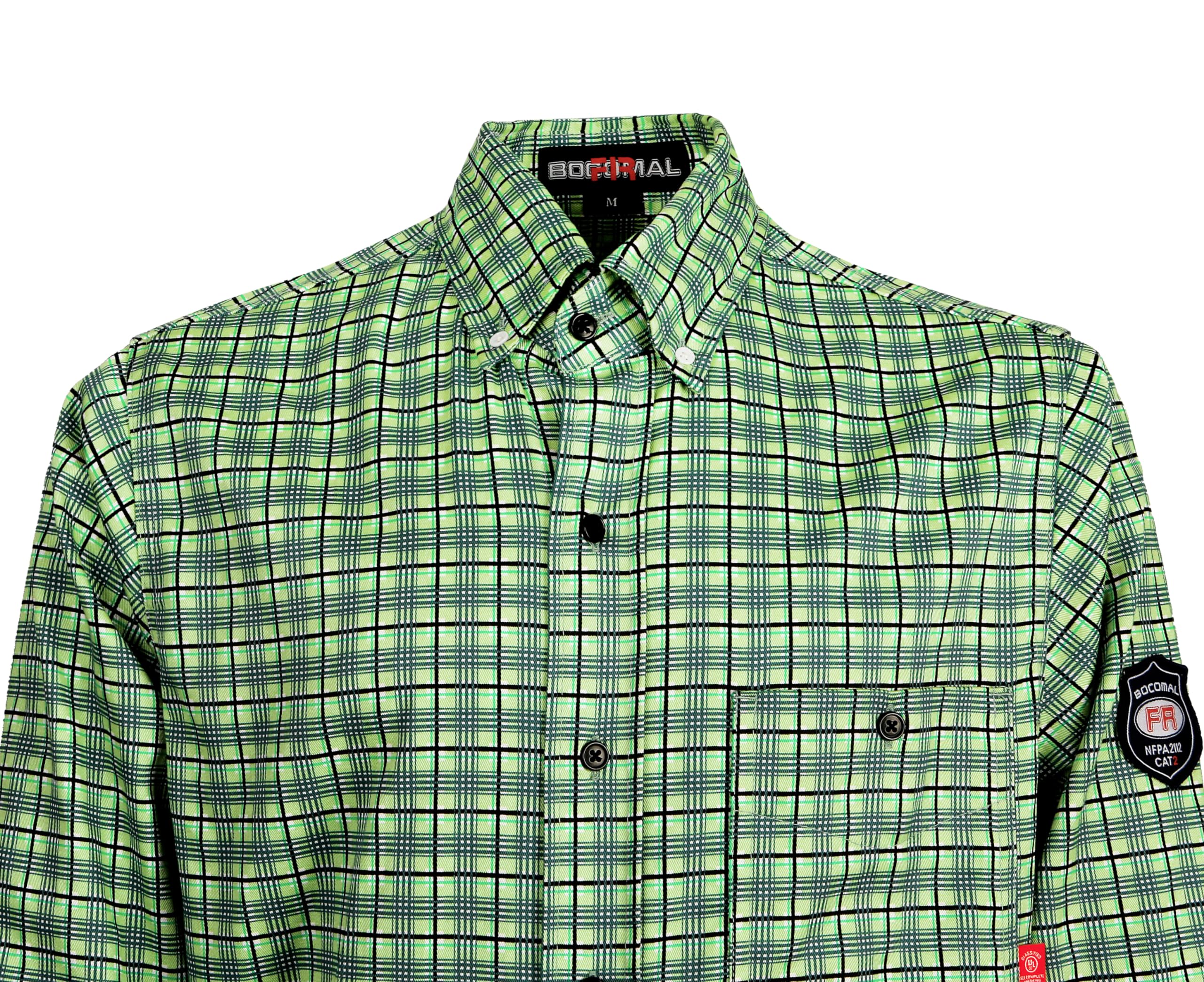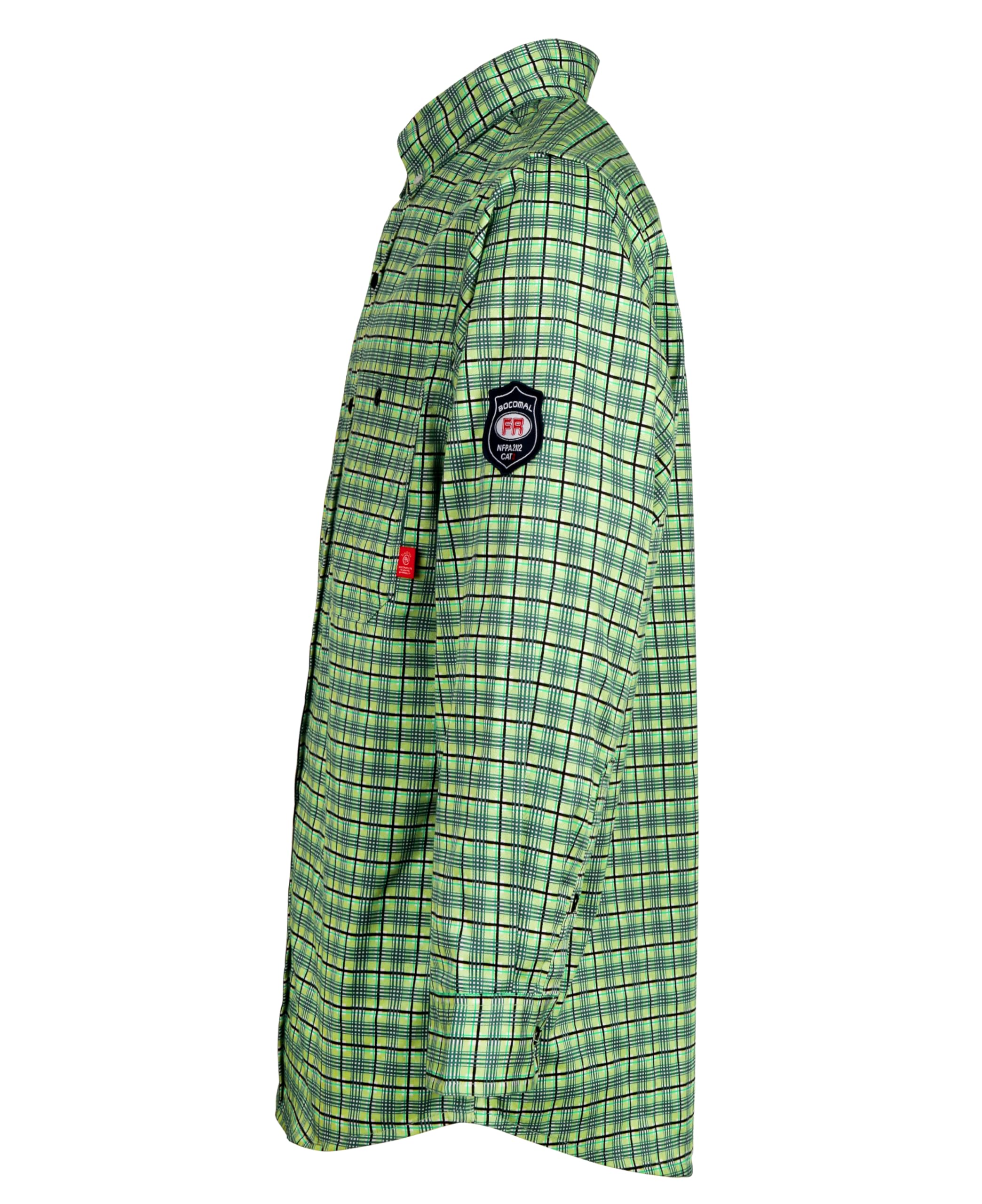 FR MATRIALSοΌ6.5OZ Printed Plaid Cotton Twill FR Treated,FR Buttons,FR Sewing Threads!Clear FR Tag on arms and bottom front.More FR info On Tag About UL Certification.