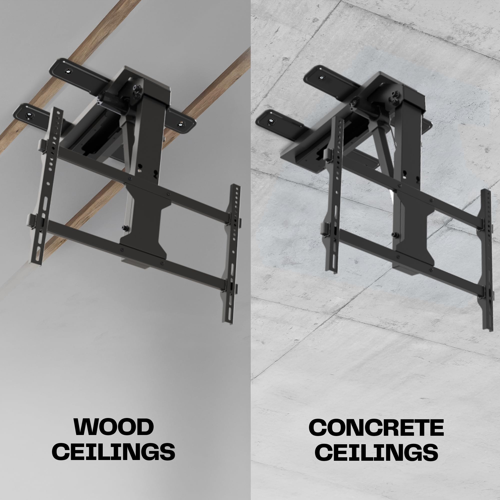 Flip-Down TV Mount: Fits 37” to 70” screens with VESA 200x100, 200x200, 300x200, 300x300, 400x200, 400x300, 400x400, 600x200, 600x300, or 600x400mm. Please Note: For TVs over 65", VESA holes should be centered to provide enough clearance from the ceiling