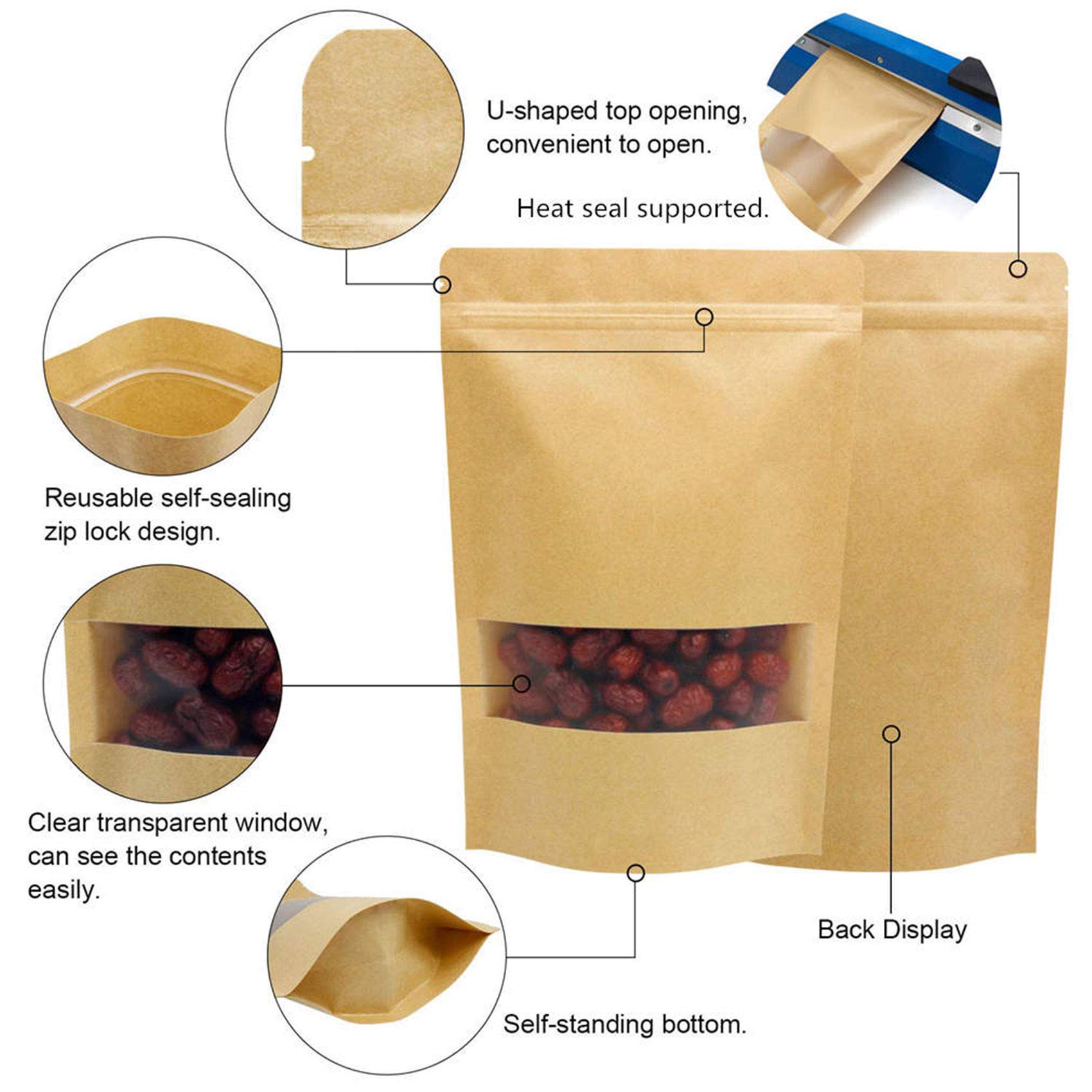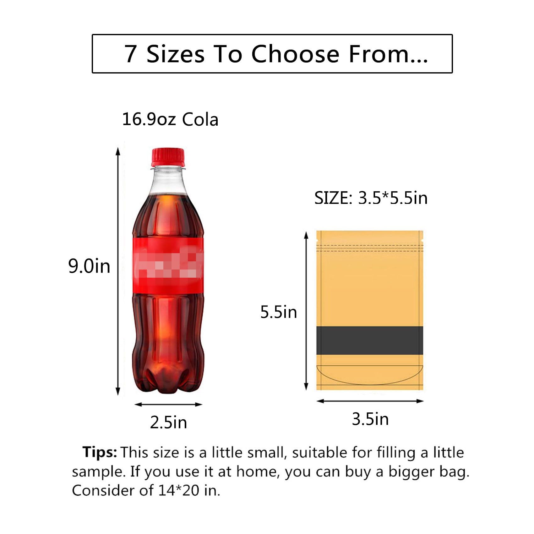 Size:3.5x5.5in. Made of kraft paper with leakproof layer inside, you can write, print or label the content information on the surface. Thanks to the waterproof layer and sealing zipper, it will resist environment dampness keep inside in good condition