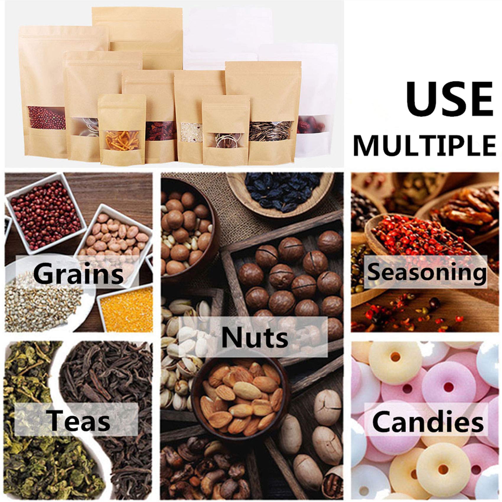 Fit for storage of tea, herb, candy, coffee, seeds, wax, beans, nuts, cookies, cereals, etc, your ideal choice for both home and business use. After being filled, the bags can stand up for store or displaying in entrepreneurs.