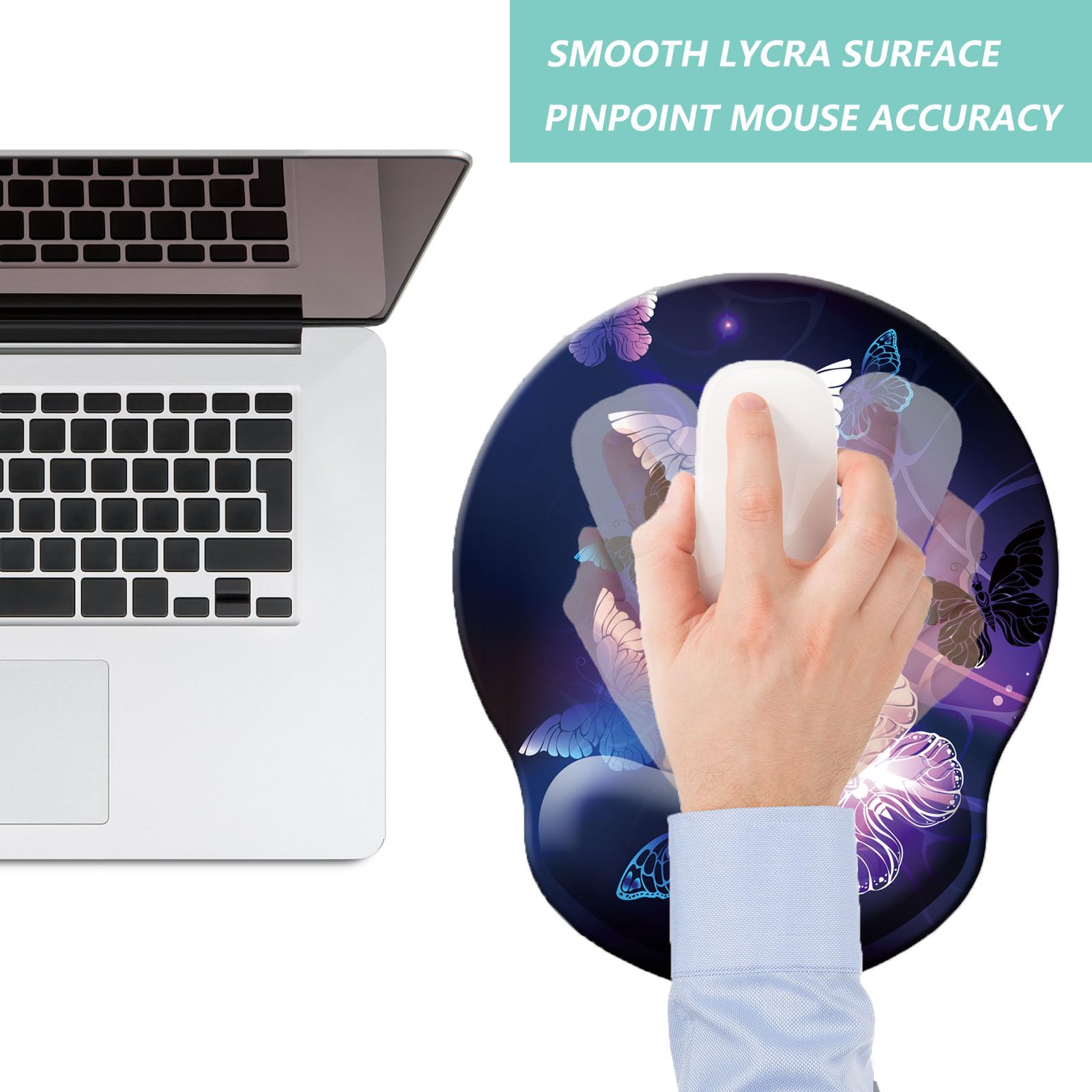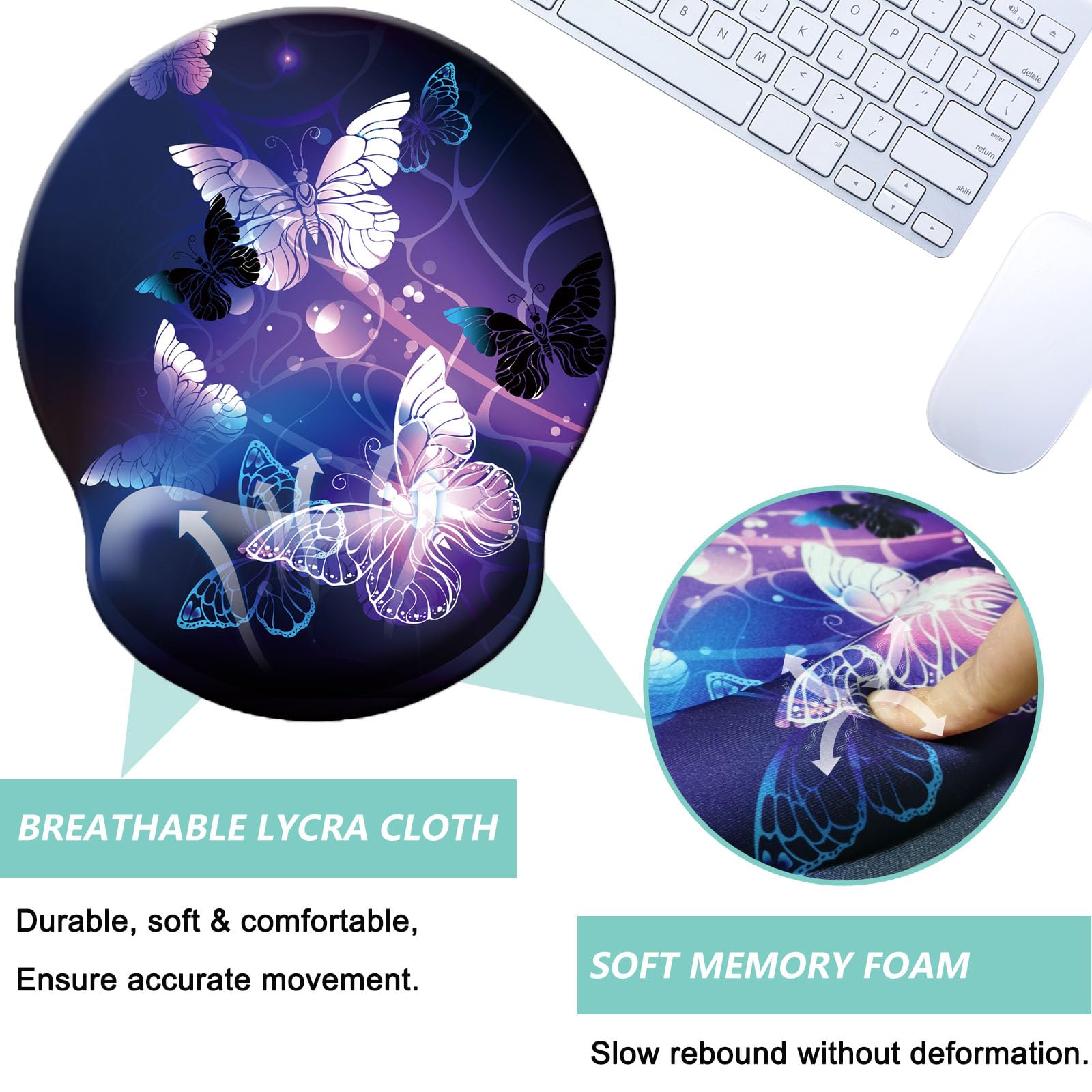 COMFORTABLE - Designed with curved shape wrist rest, filled in memory foam. The soft slow rebound memory foam cushions fit your hands in a natural posture. The smooth surface is made of breathable lycra cloth, ensure accurate precise movement, suitable for all types of mouse, vertical, corded, wireless, mechanical, optical etc.